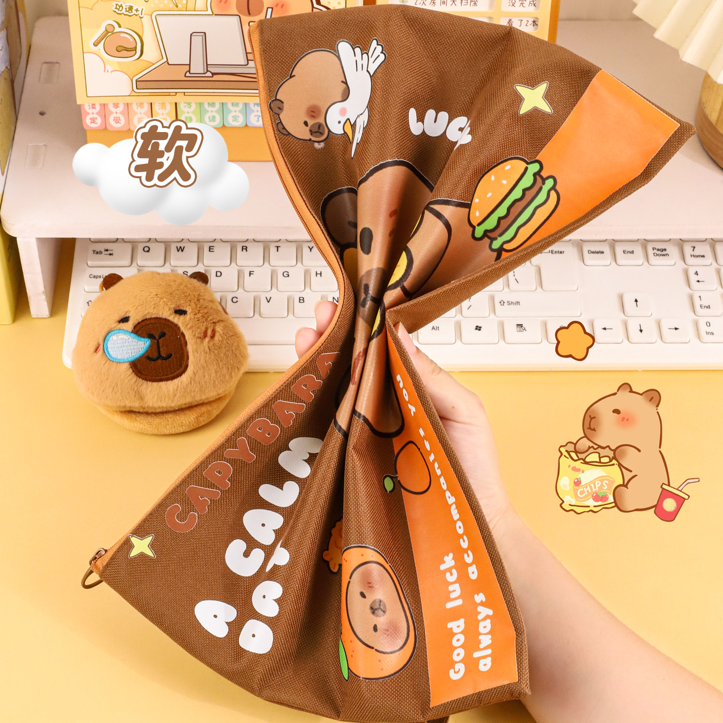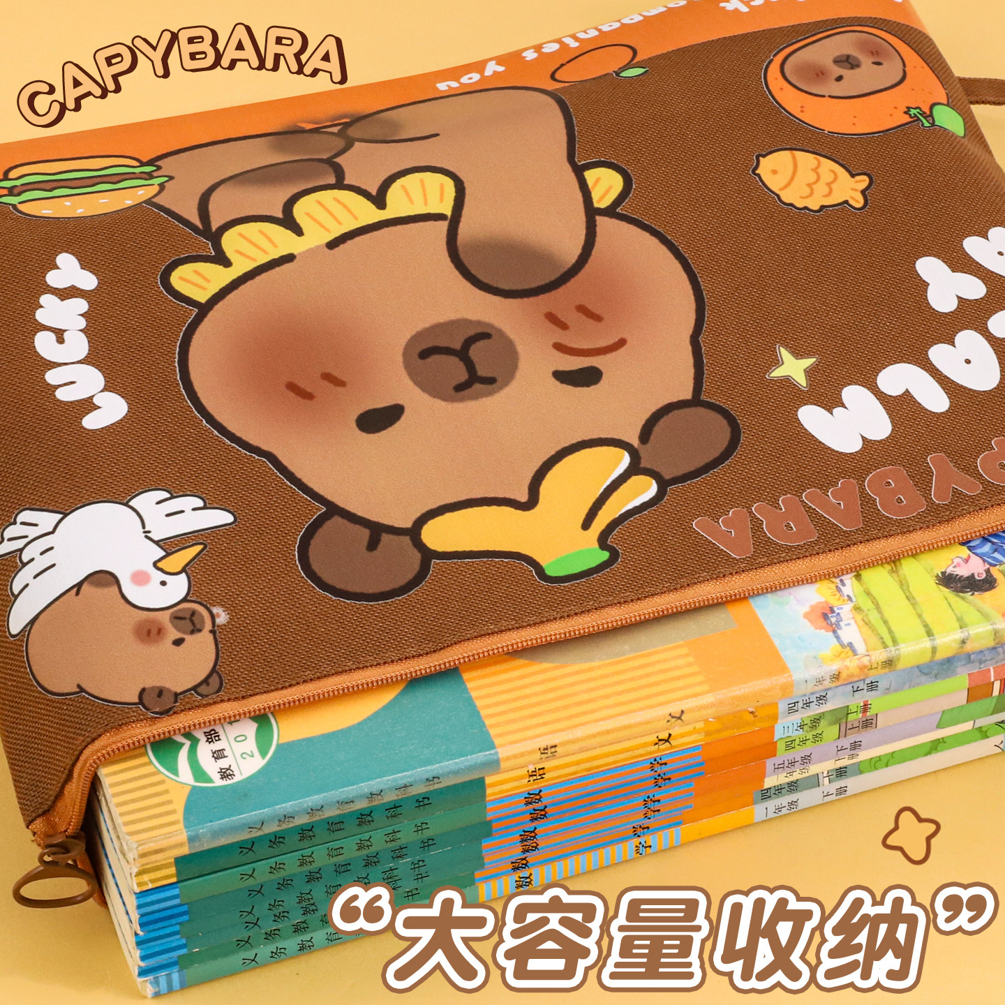 A4卡皮巴拉文件袋资料袋试卷袋文具袋手提收纳袋小学生用大容量防水卡通补习袋档案袋初中生作业袋拎书袋补课