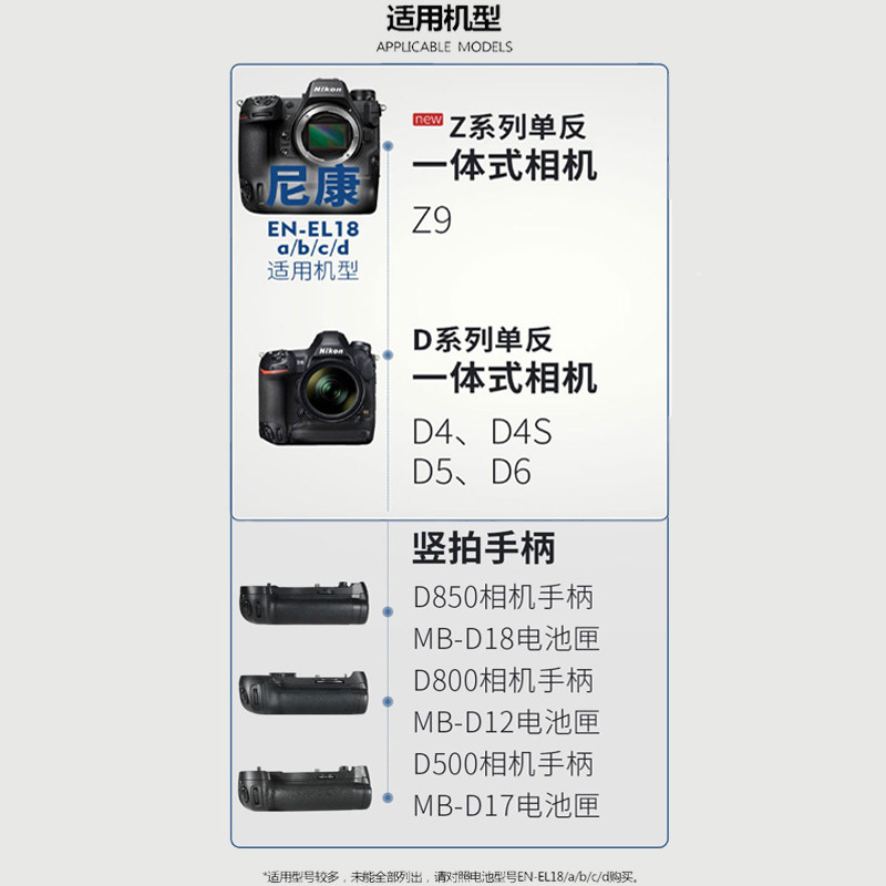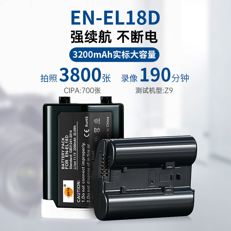 【国家3C认证】蒂森特EN-EL18D 适用于nikon尼康微单Z9 D6 D5 D4 D4S相机D850 D800 D500手柄电池充电器EL18D