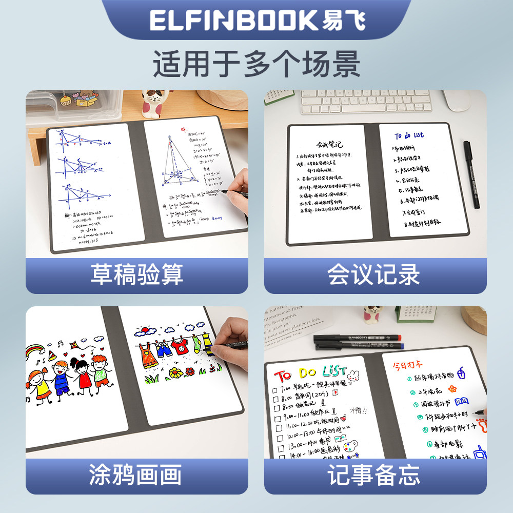 易飞小白板笔记本桌面记事板迷你白板A5可擦写备忘录草稿纸计划板