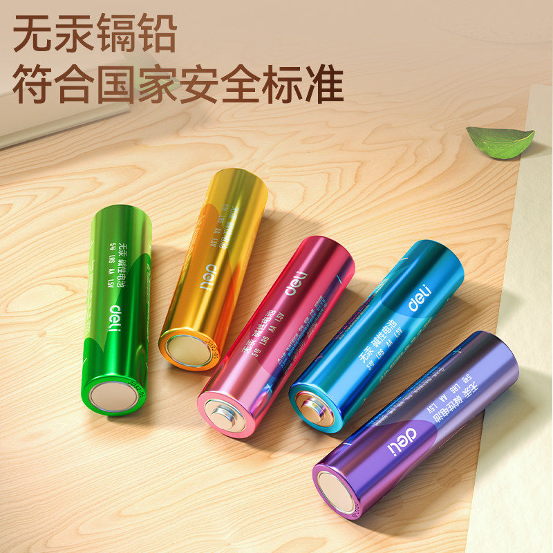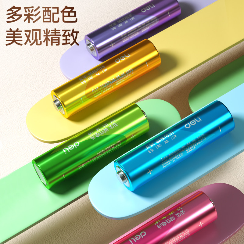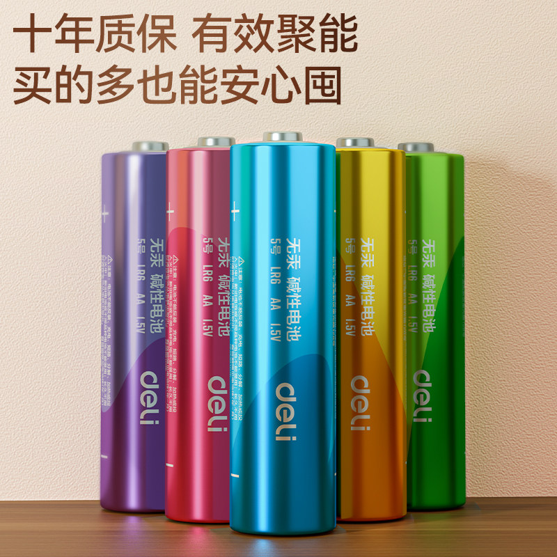 得力电池7号5号遥控器电池七号碱性儿童玩具电池批发鼠标干电池12粒空调电视小号AA遥控汽车挂闹钟官方彩虹款