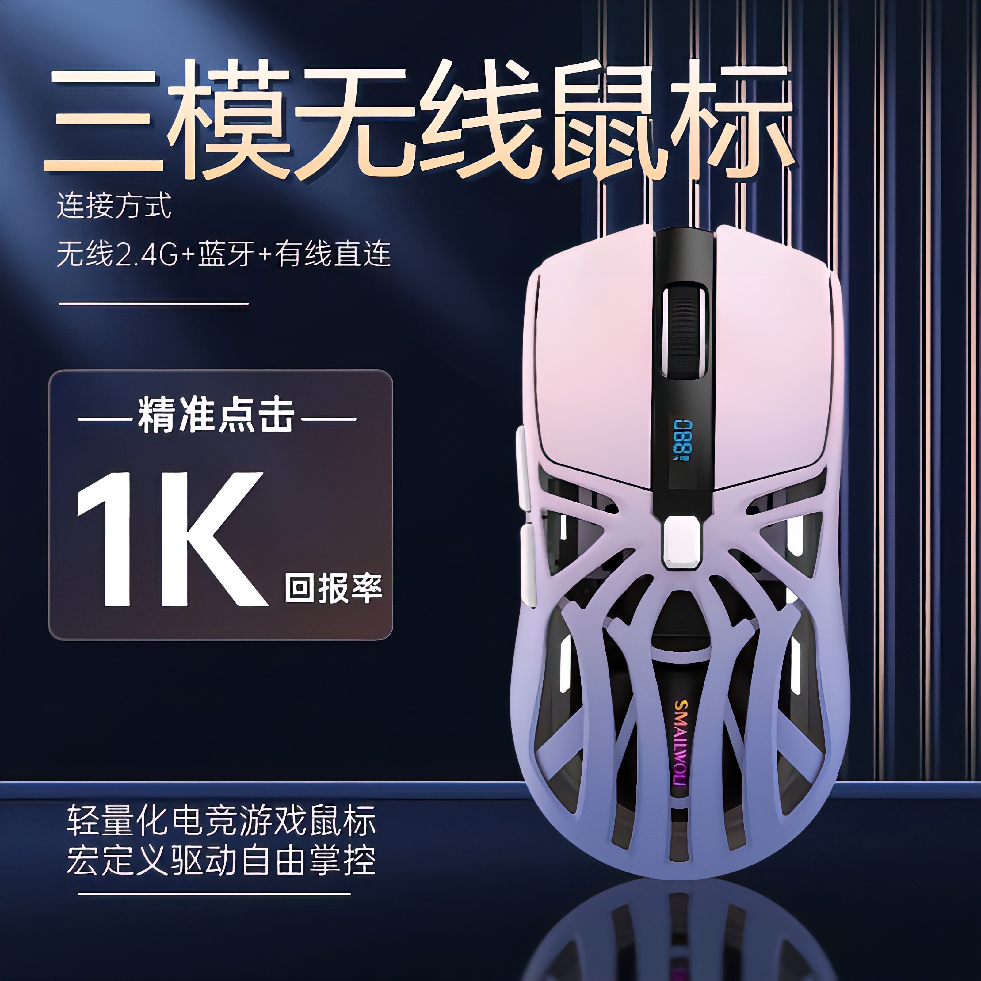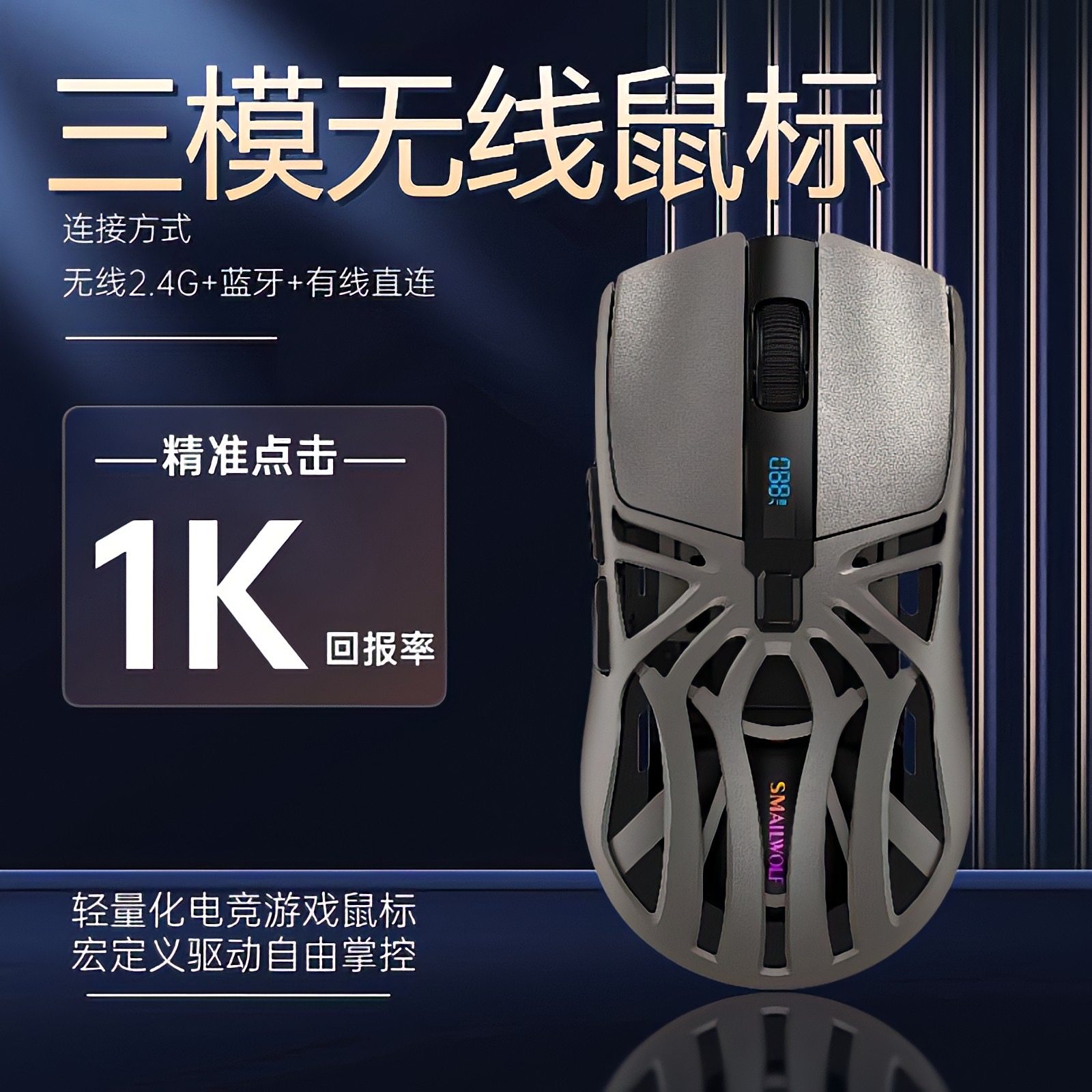 斯迈狼RS8蜘蛛镂空无线三模鼠标游戏办公数字屏幕电量显示1K回报