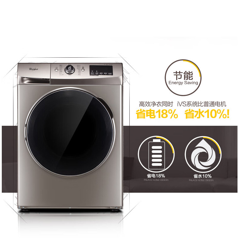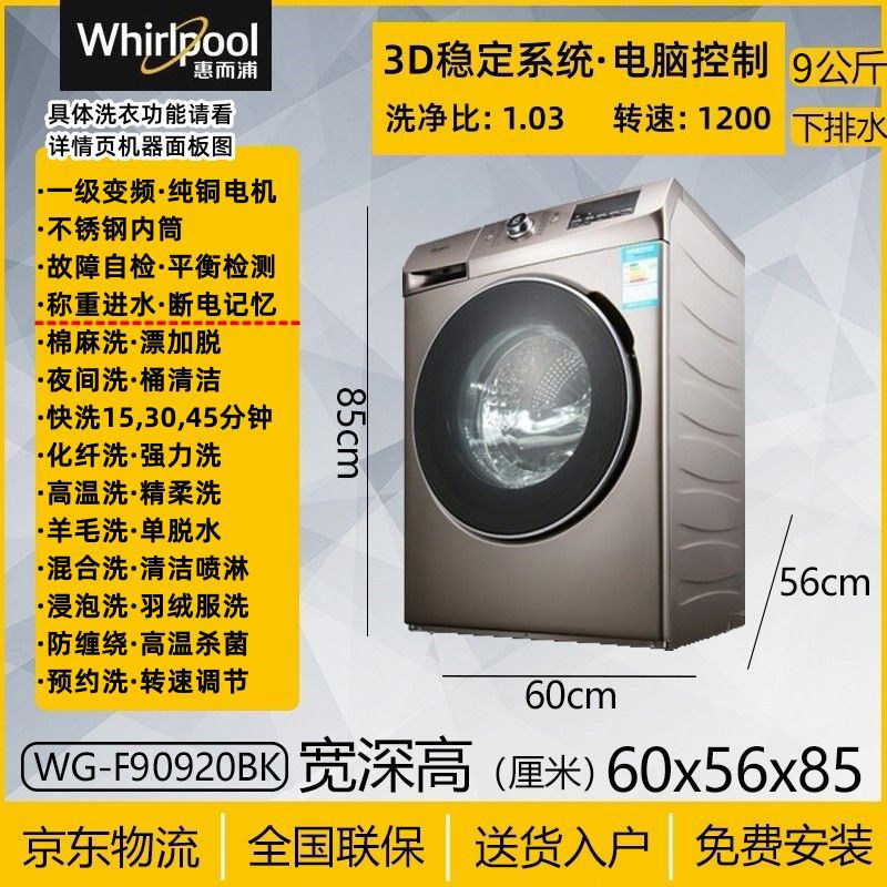 惠而浦变频滚筒洗衣机全自动家用8/9公斤静音智能纯铜电机节能