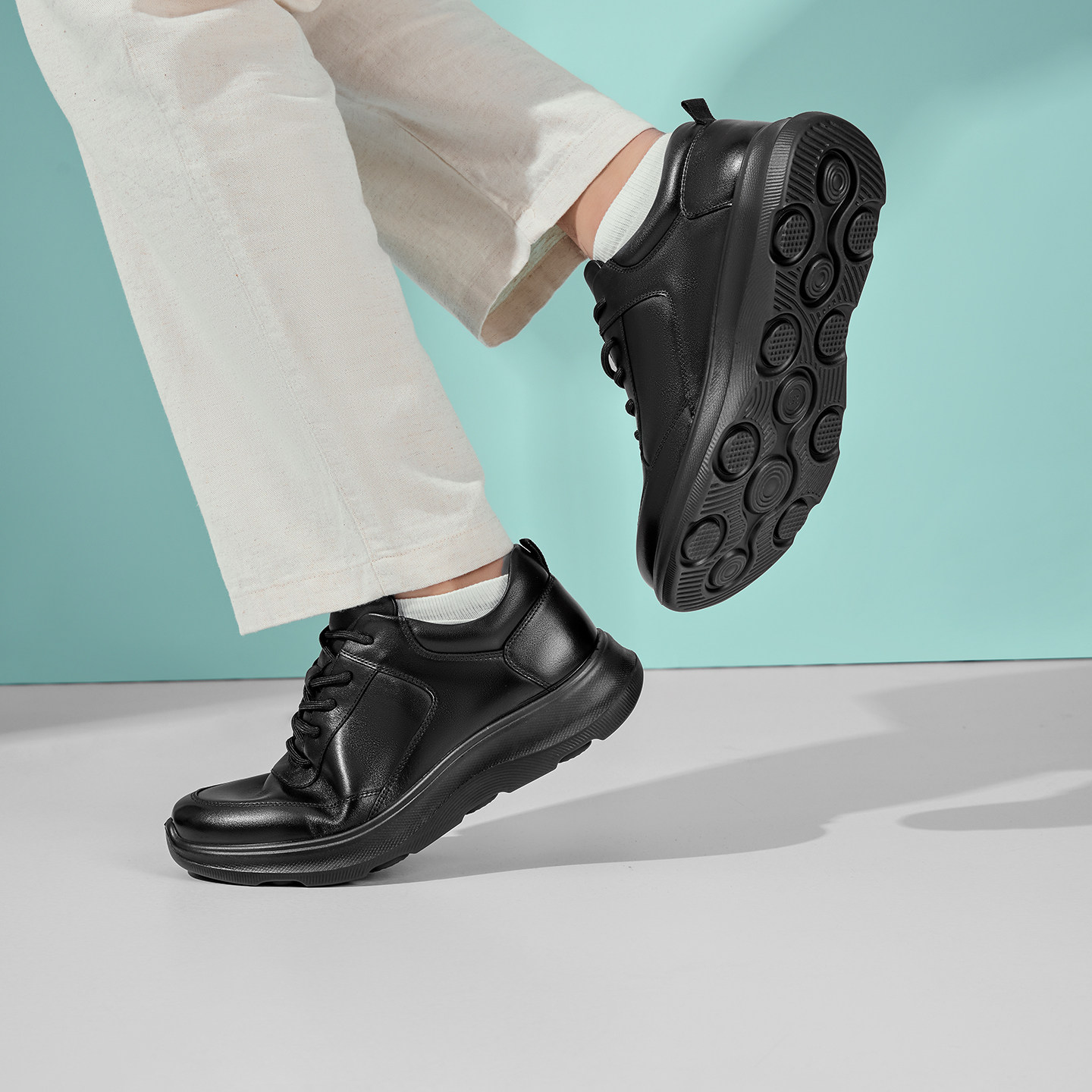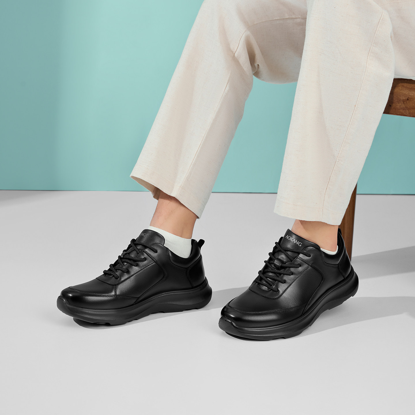 【小牛皮】青润chioryn袋鼠鞋男黑色真皮增高厚底休闲通勤风皮鞋