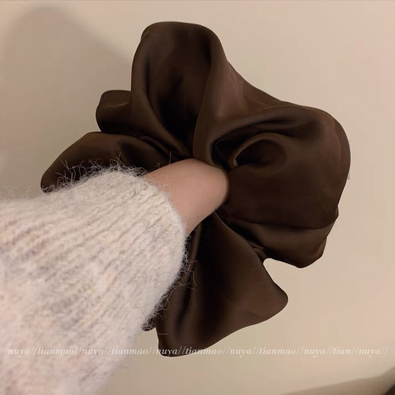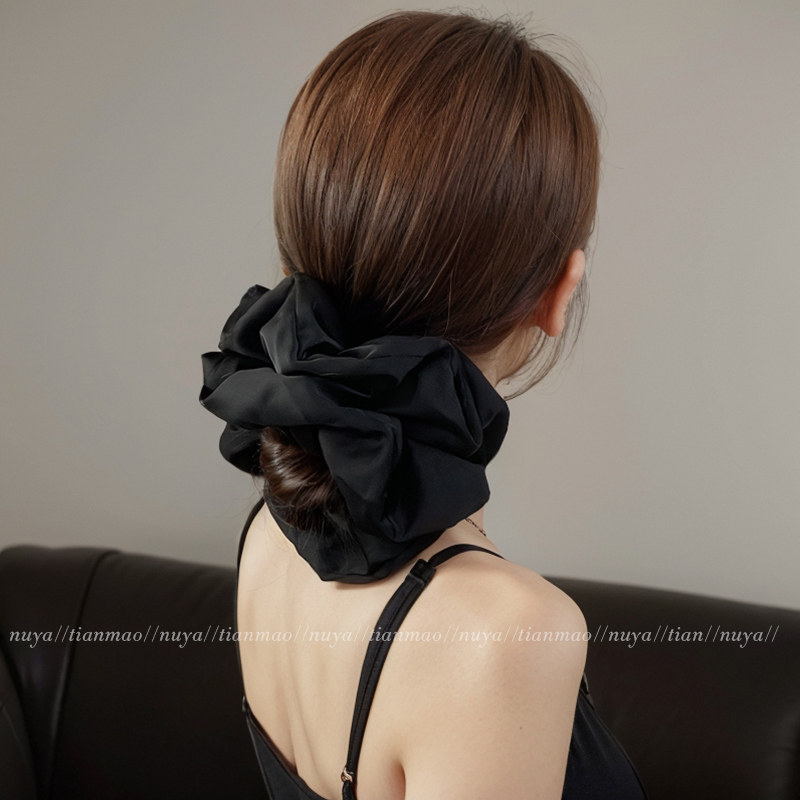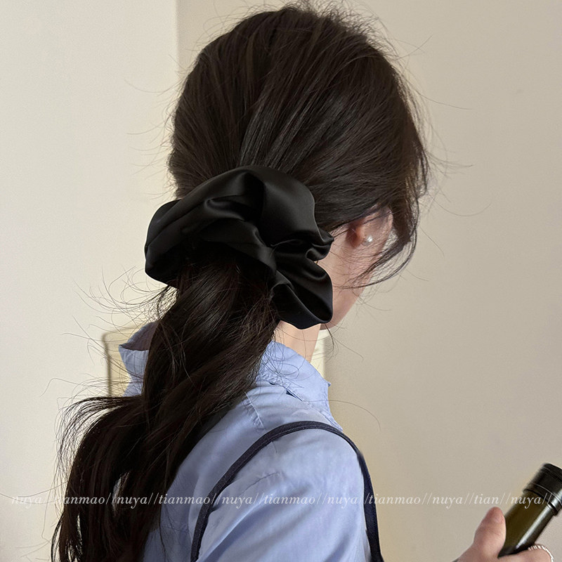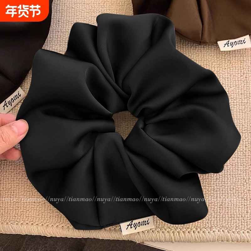 超大号真丝黑色缎面大肠发圈女高级感肥肠头花扎头发发绳睡眠头绳
