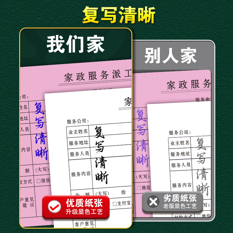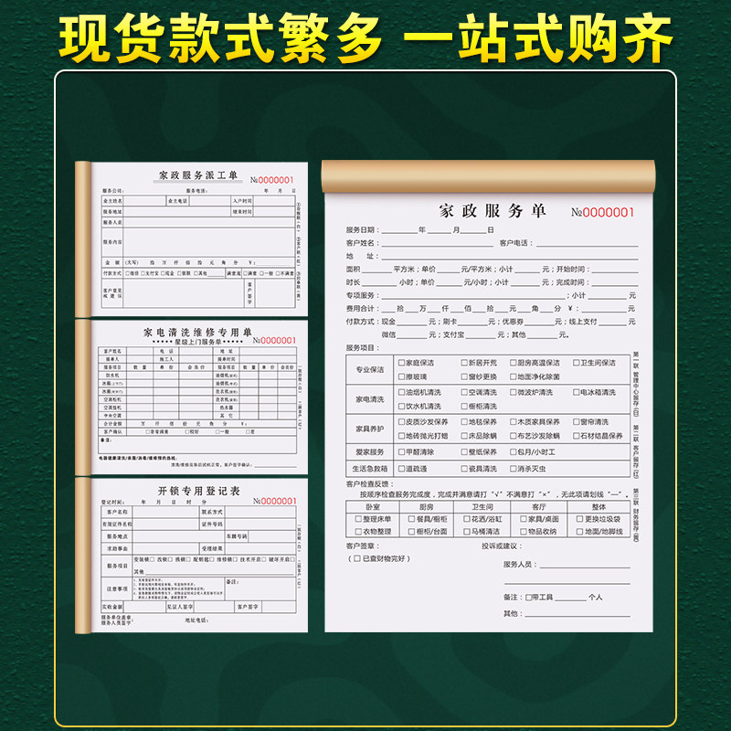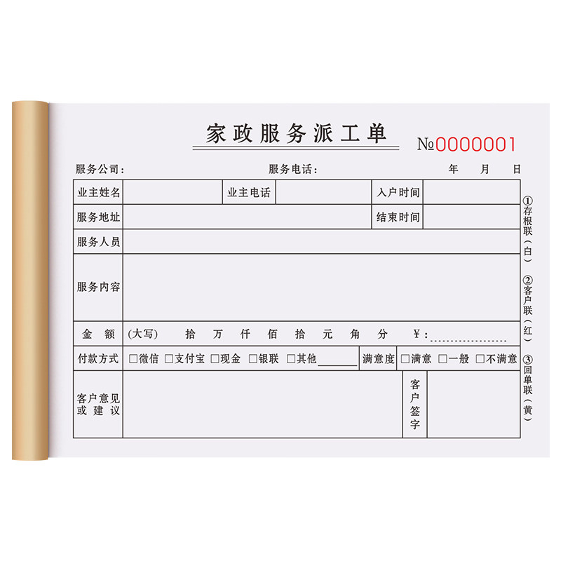 家政服务单二联定制保洁上门清洗合同表2连住家保姆派单收据2联阿姨卫生清洁单子客户派遣派工单据会员记录本
