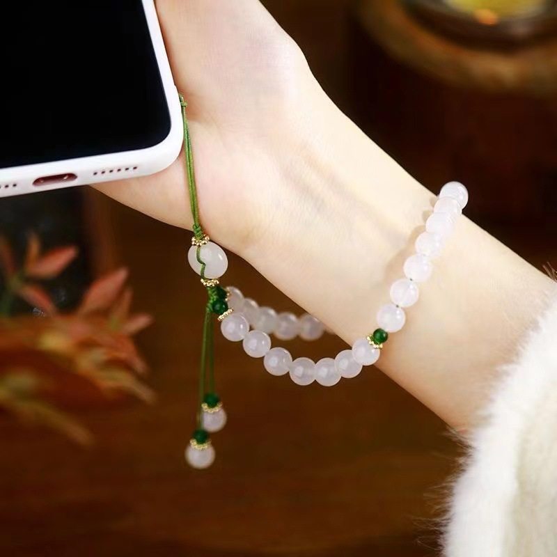 白玉髓链子挂手腕夏季清凉碧玉静心串珠礼物小挂件饰品琉璃玻璃