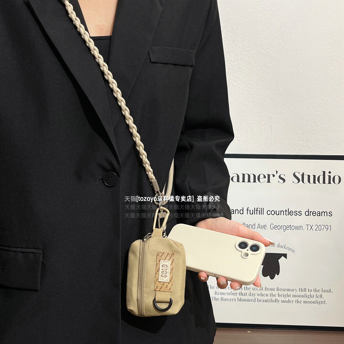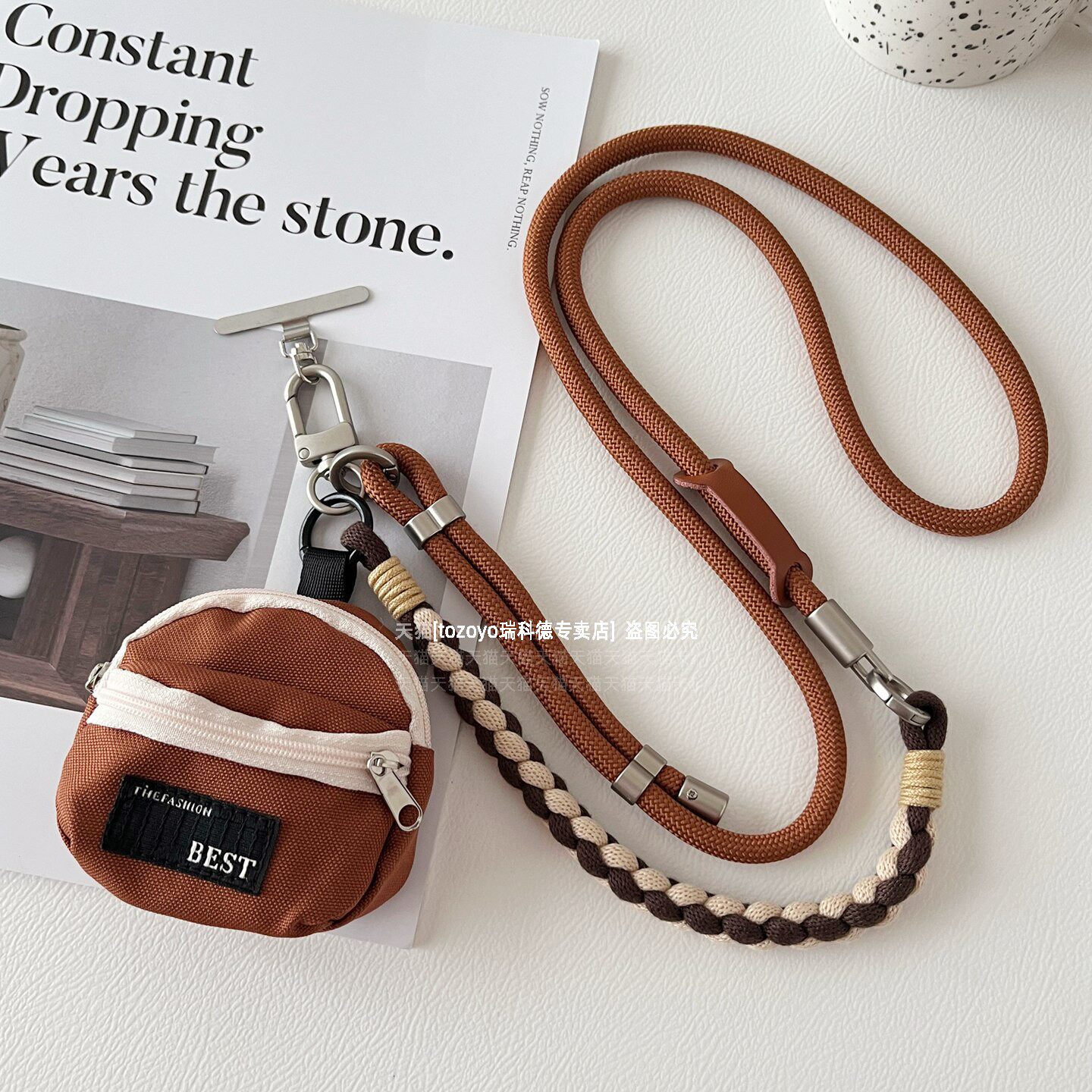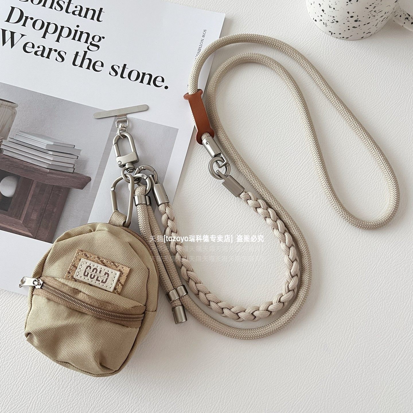 卡其色可调节手机挂绳带小包挂件复古高级感旅游背带耳机零钱卡包女原创编织手腕挂脖斜挎多功能防盗绳相机壳