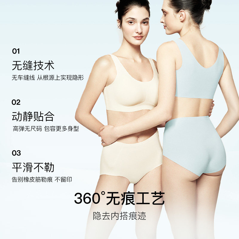 ubras无尺码隐形无痕抗菌通勤干爽透气舒适高弹纯色中腰内裤女