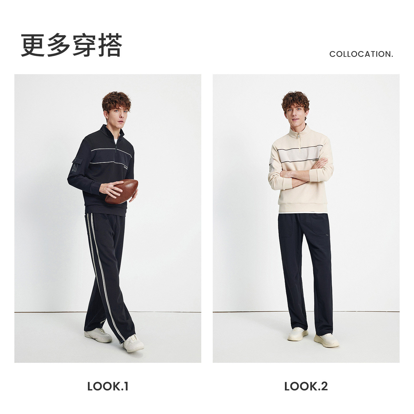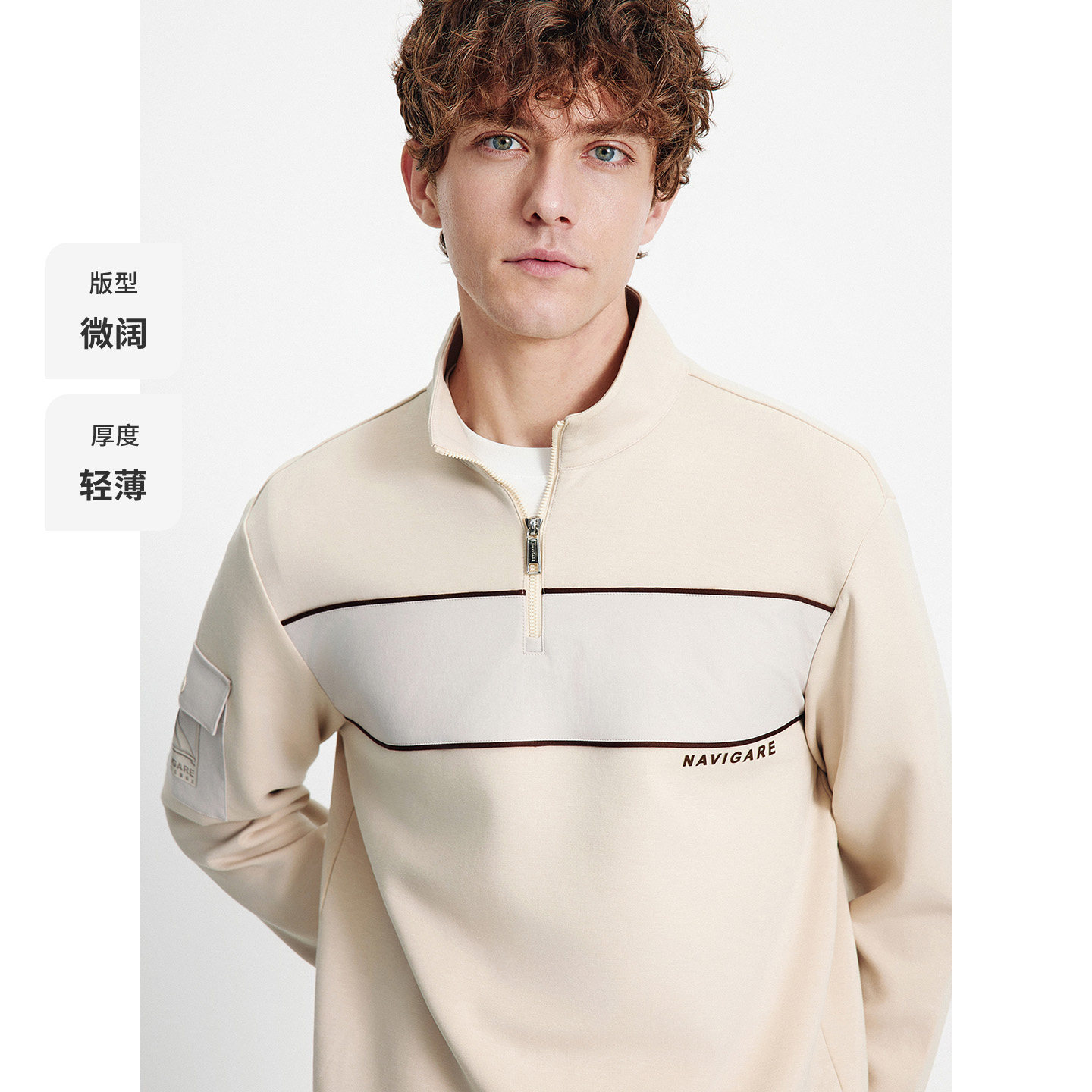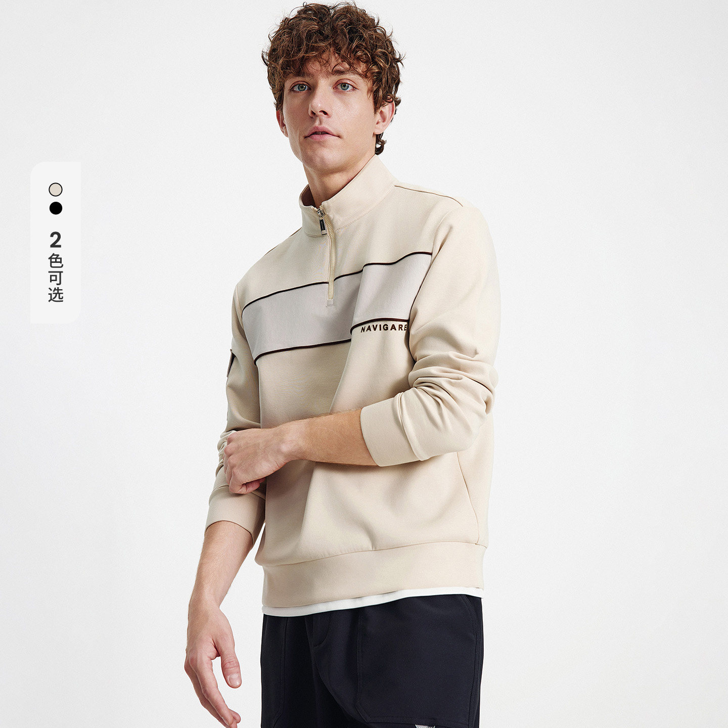 Navigare意大利小帆船时尚半开领卫衣男士秋季新品莫代尔长袖T恤