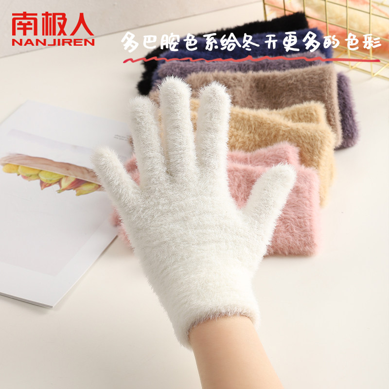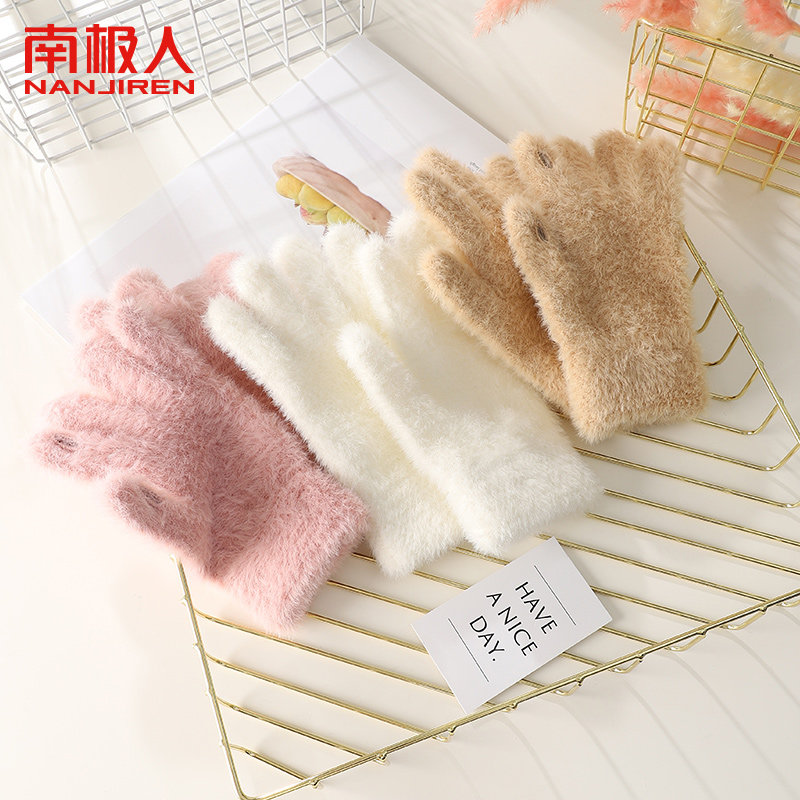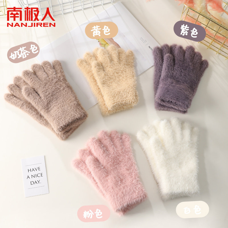 2023保暖毛绒毛线手套女秋冬季可爱防寒针织骑行手套漏二指触屏A