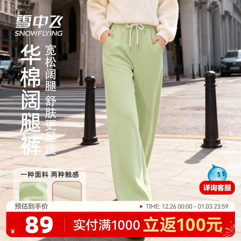 雪中飞加绒裤子女冬季26新款高腰休闲阔腿裤小个子加厚运动卫裤PC