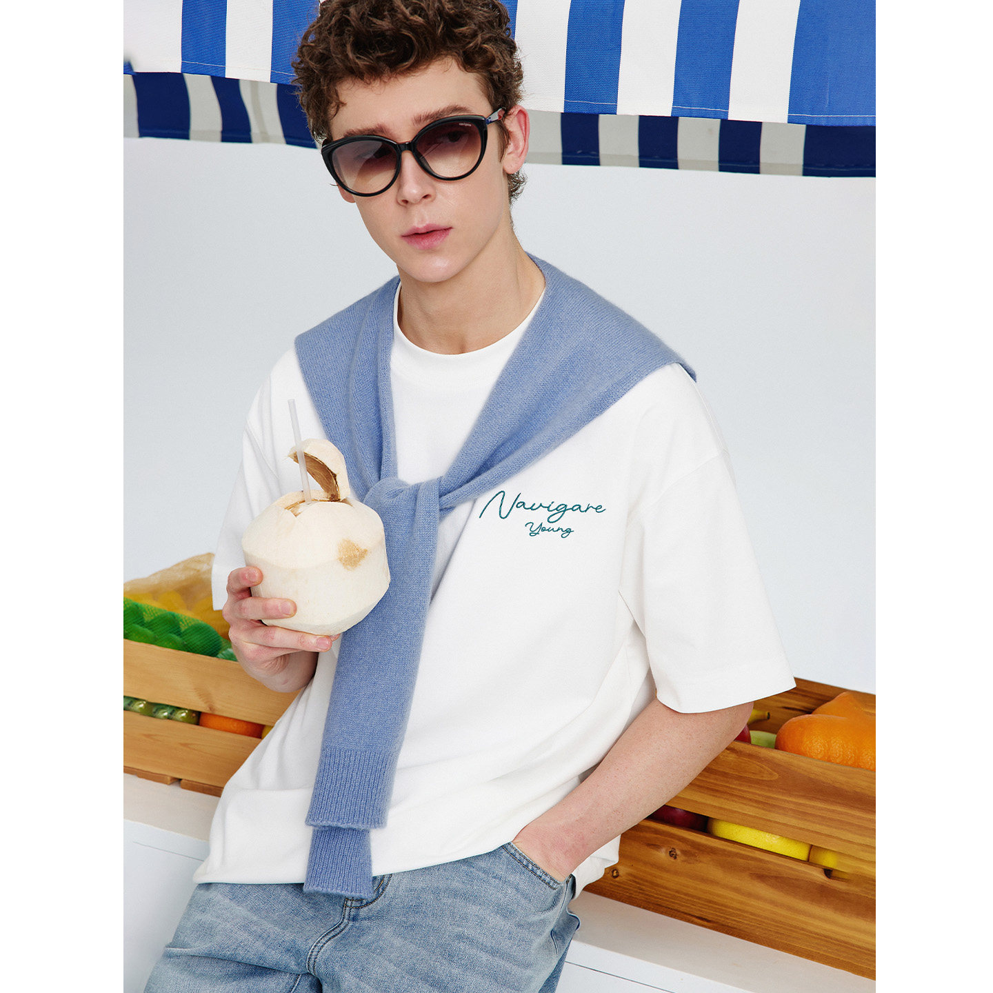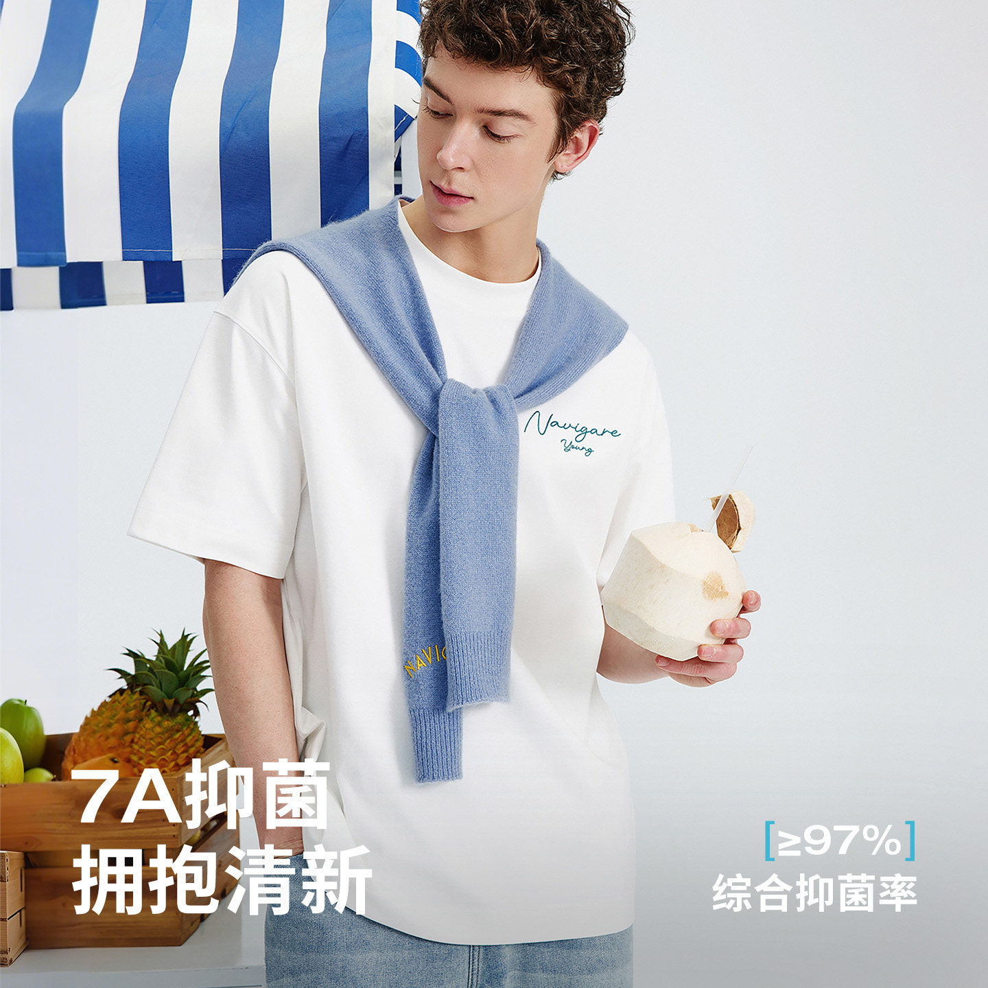 Navigare意大利小帆船抗菌白色短袖T恤男2026夏季宽松套头上衣