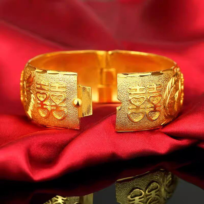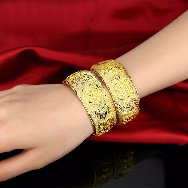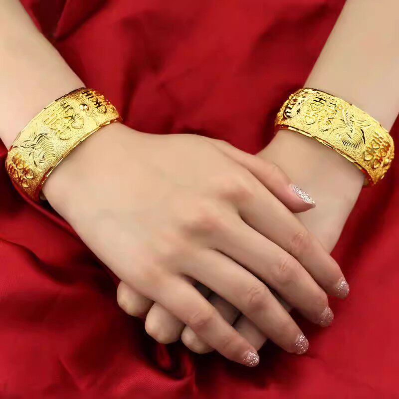 新娘镀真金不掉色结婚道具仿真假三金五金轻薄款龙凤手镯仿金镀金