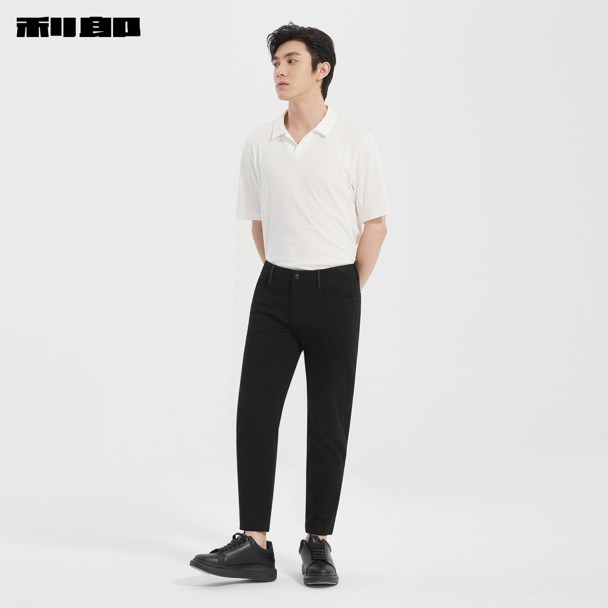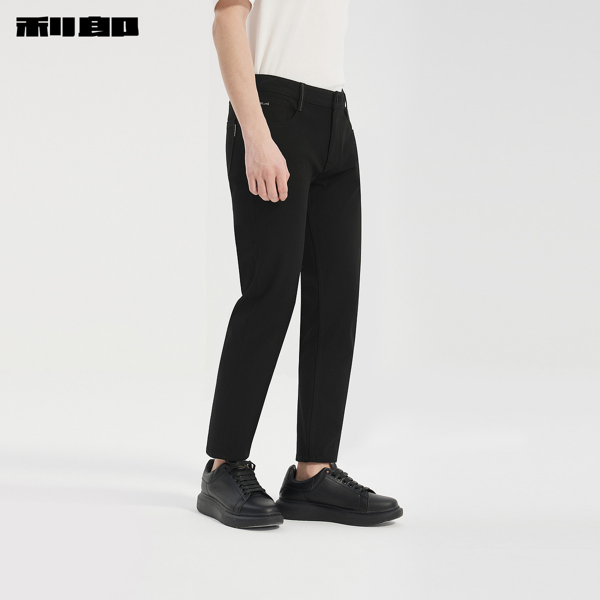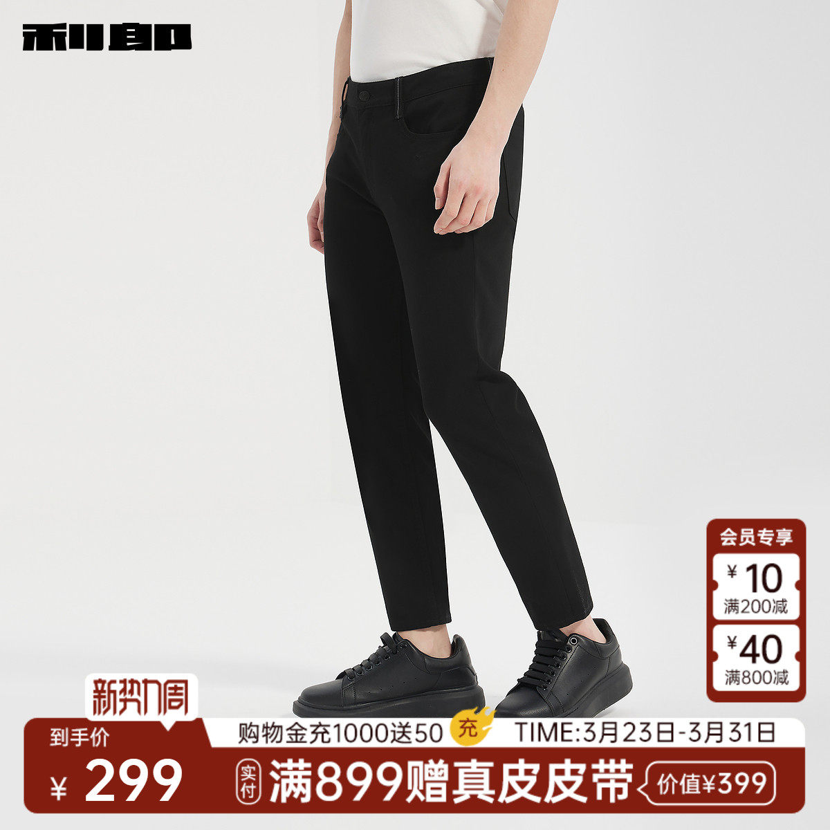 【四面弹/科技黑】利郎官方 九分牛仔裤春新款休闲黑色小脚裤子男