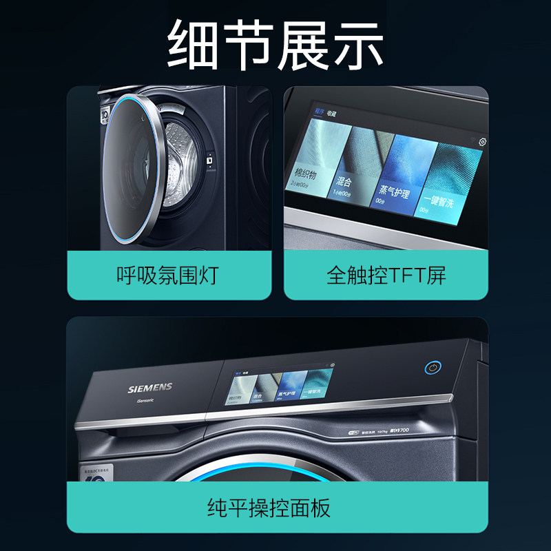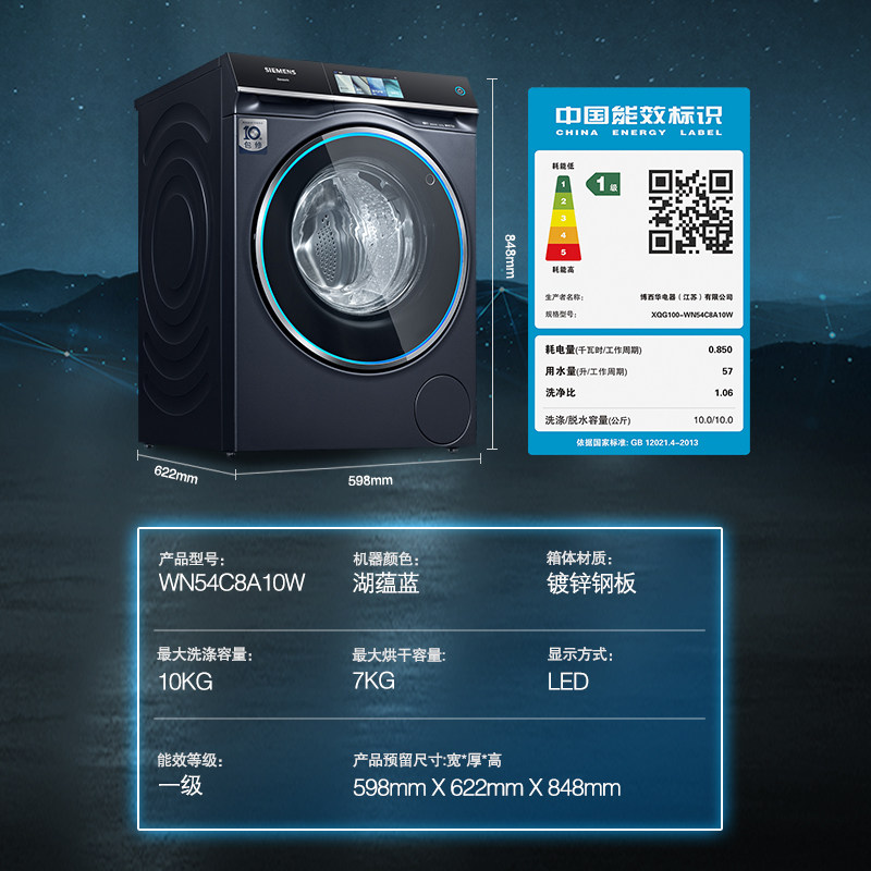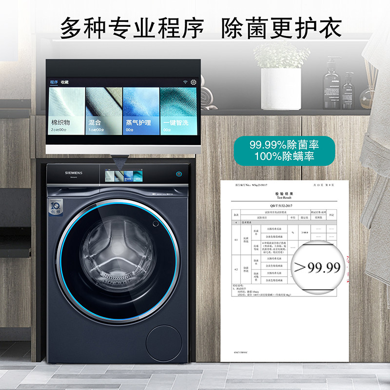 【蓝宝石智投】西门子10公斤家用全自动洗烘一体机除菌8A10