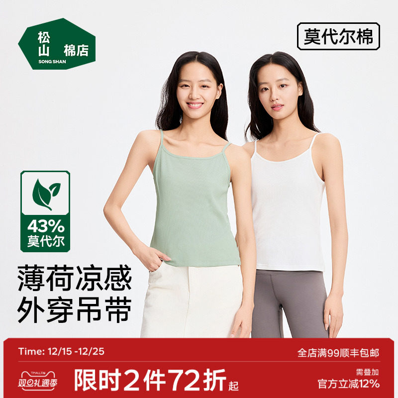 松山棉店薄荷罗纹女士吊带棉莫纯色修身背心白色面料新款肩带可调