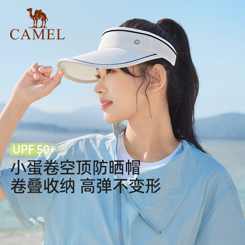 骆驼小蛋卷防晒空顶帽女夏防紫外线大檐遮阳贝壳帽子户外太阳帽