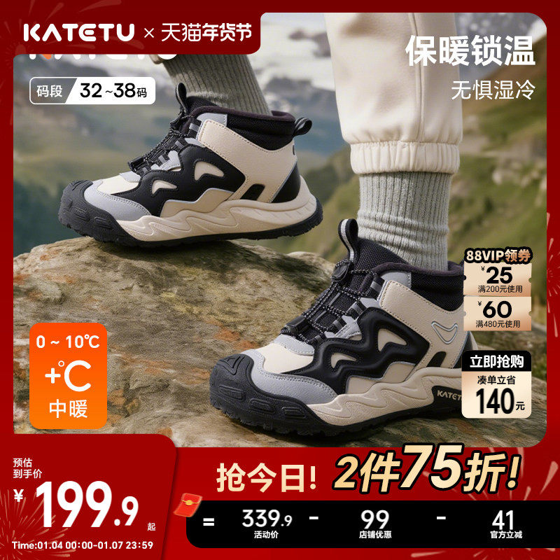卡特兔童鞋户外儿童运动鞋2025冬季中大童防水防滑保暖儿童棉鞋