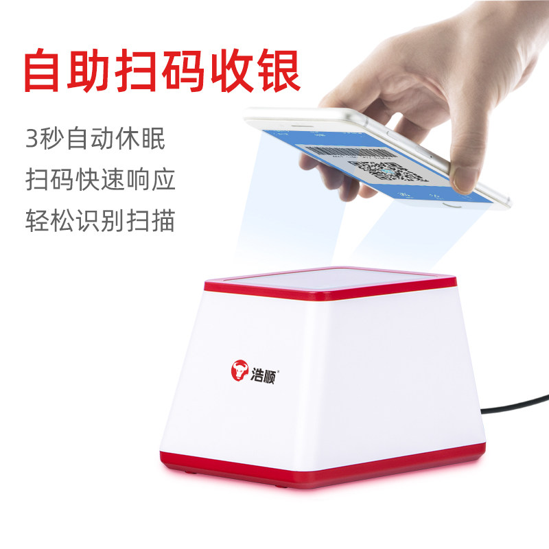 浩顺二维码支付盒子付款扫描器超市收银小白盒扫描平台微信收钱机器扫码墩二维码疫苗扫码墩进店扫码播报器