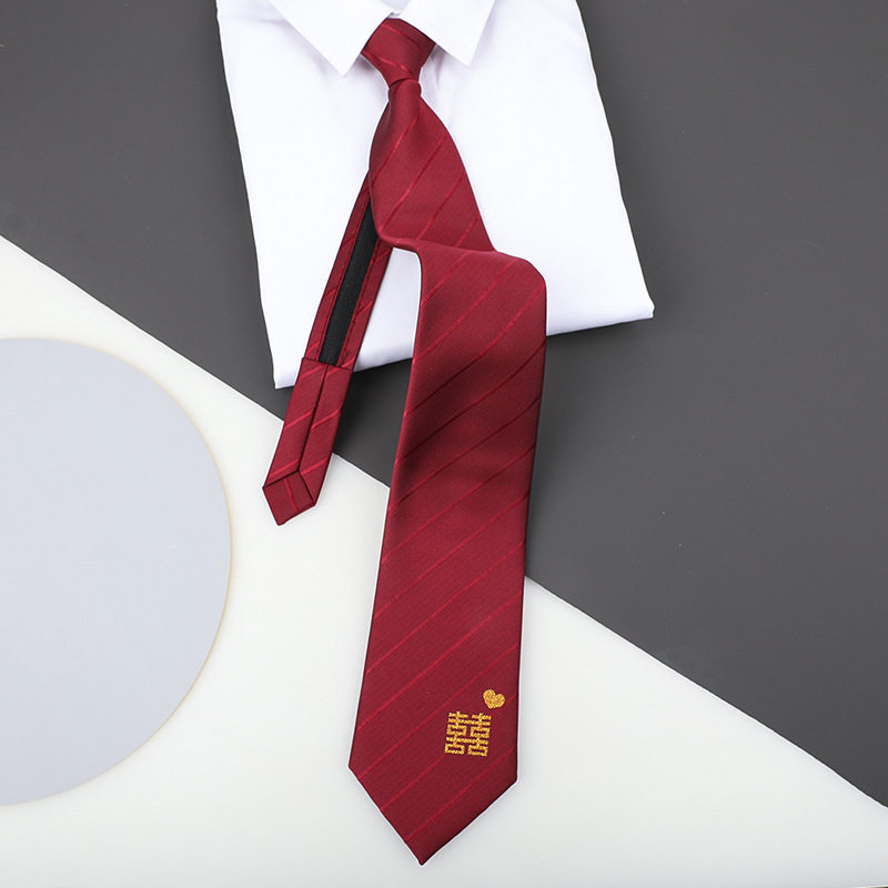 结婚新郎懒人免打男女红色拉链式领带商务正装韩版条纹领带