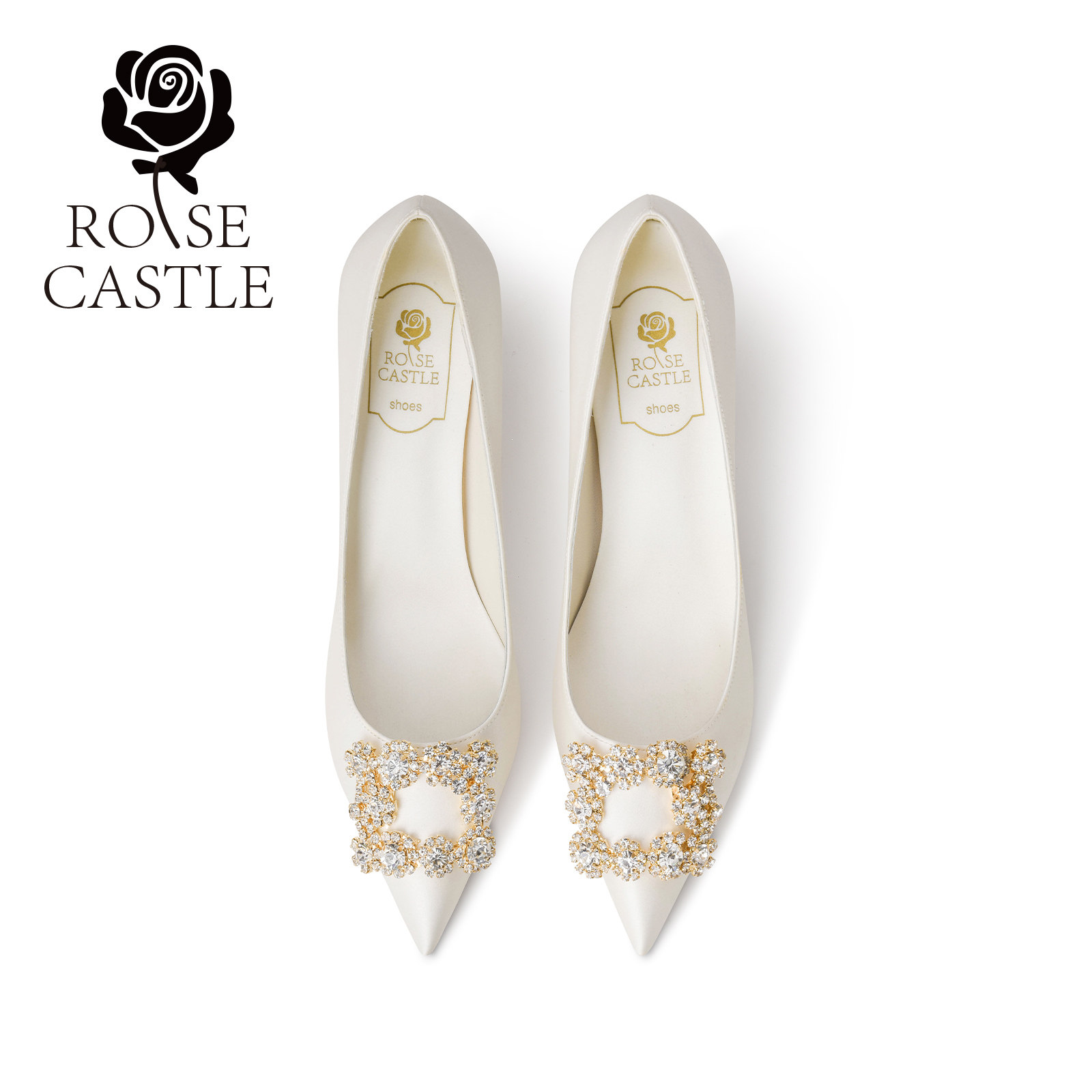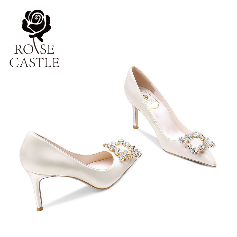 rosecastle订婚鞋白色缎面细跟不累脚高跟鞋女新娘敬酒鞋旗袍婚鞋