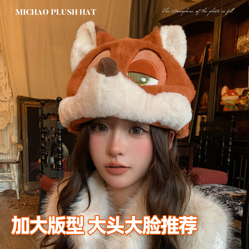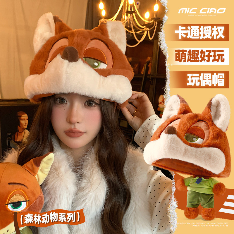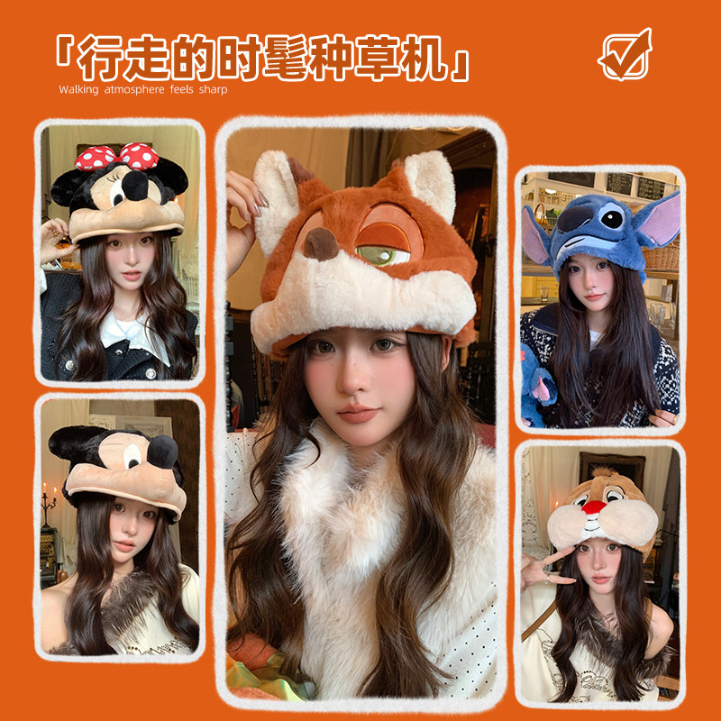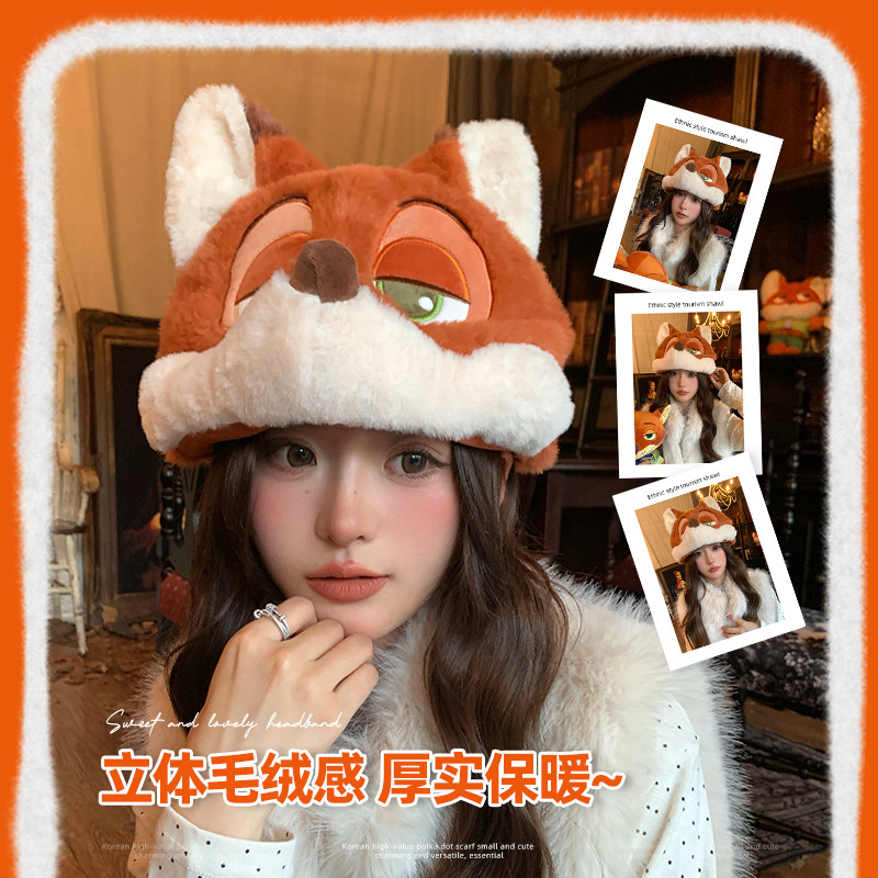朱迪尼克狐毛绒帽子女2025新款冬保暖情侣米奇米妮可爱护耳雷锋帽