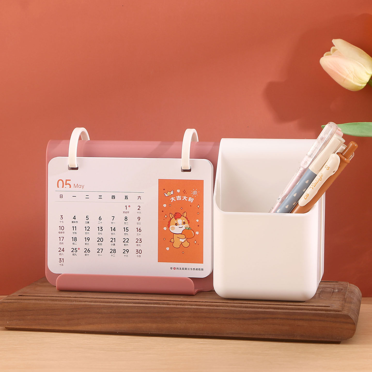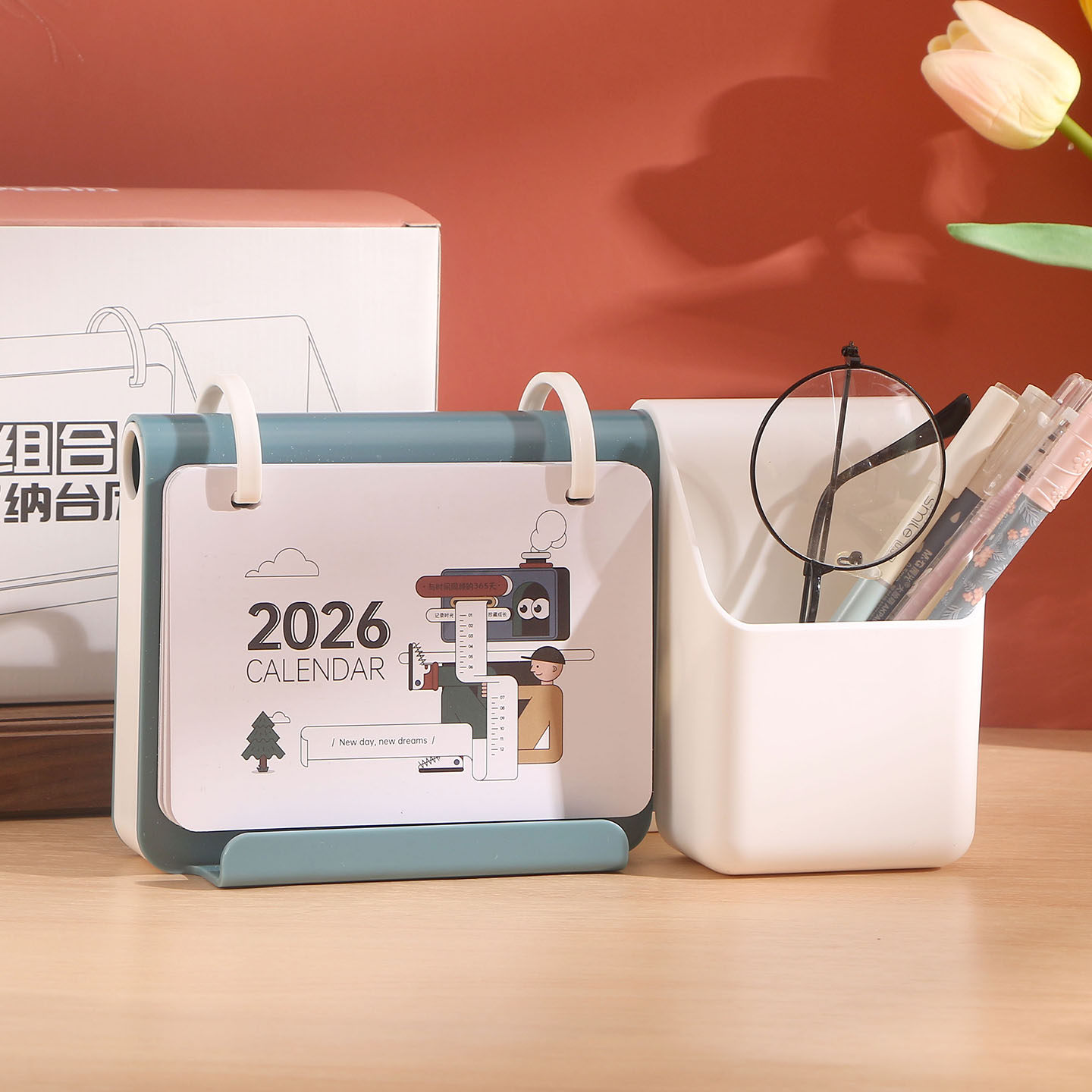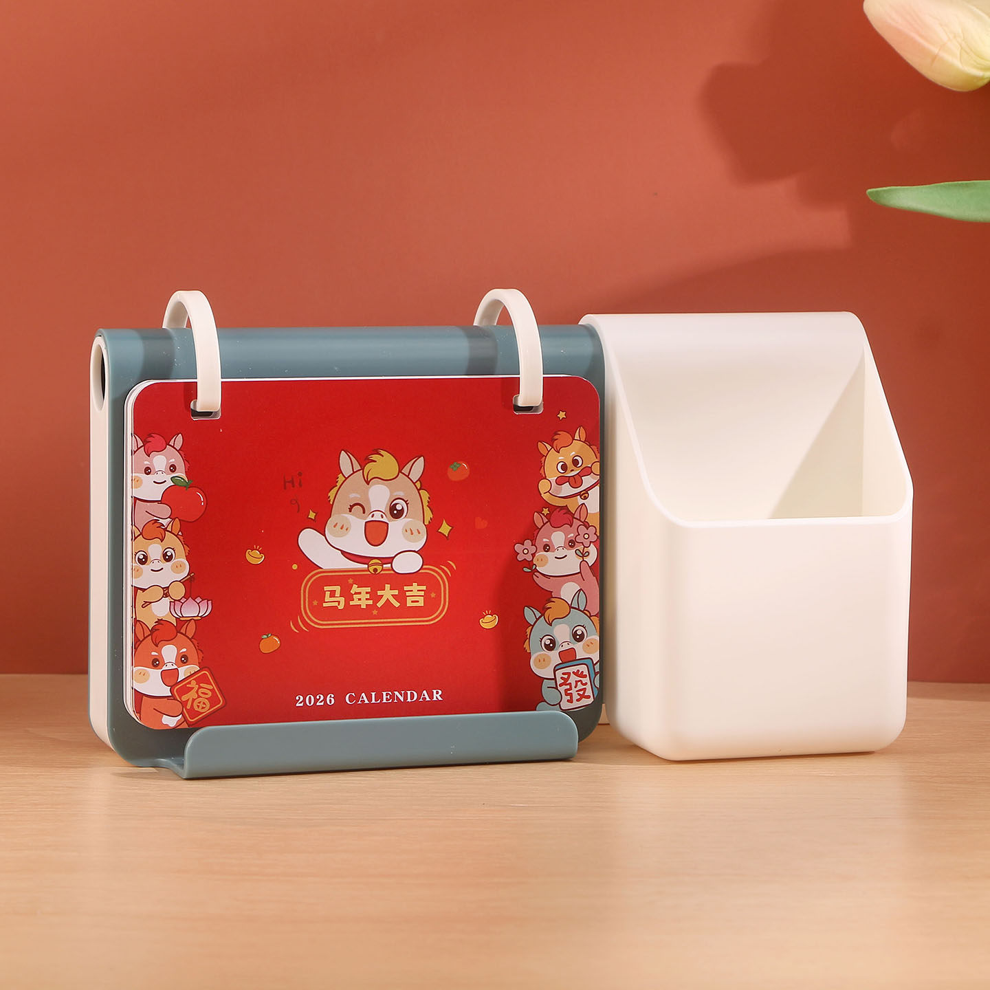 新款台历2026年多功能简约收纳笔筒日历定制做广告创意式桌面摆件马年塑料塑胶商务台历办公礼品月历专版印刷