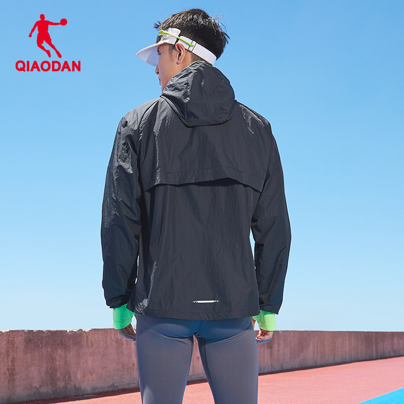 特步防泼水夹克外套男春秋季户外风衣连帽黑色上衣防风运动训练服