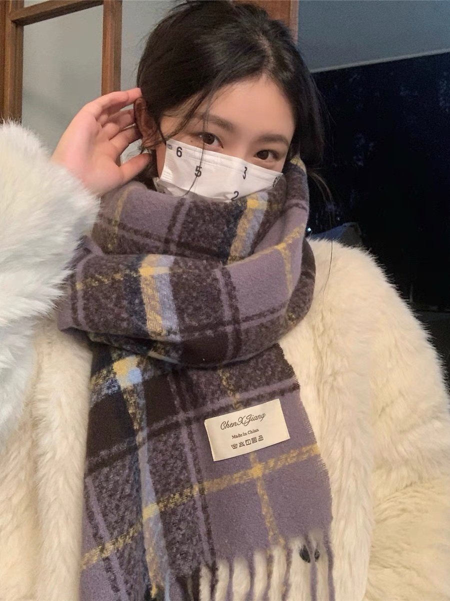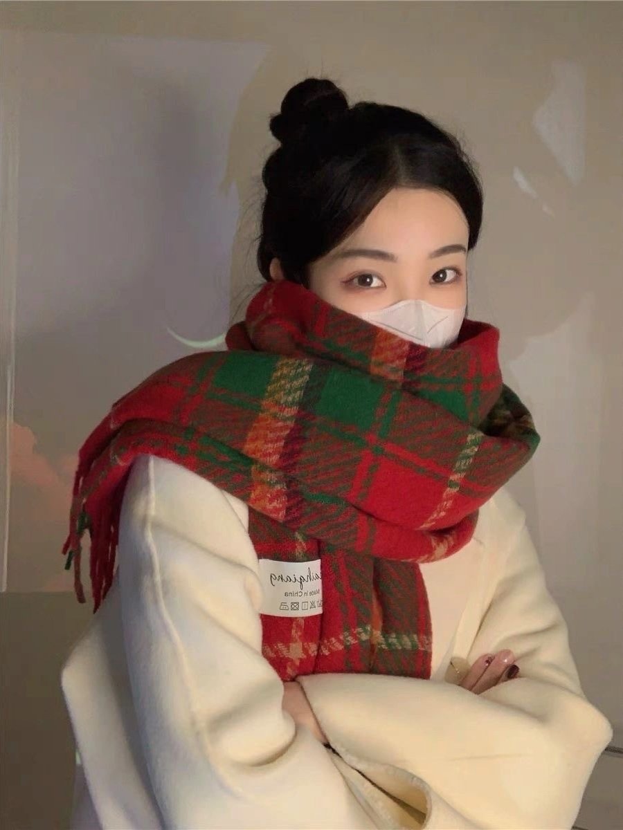 三福格子围巾韩系高级感保暖围脖披肩两用旅游外搭女冬季2025新款
