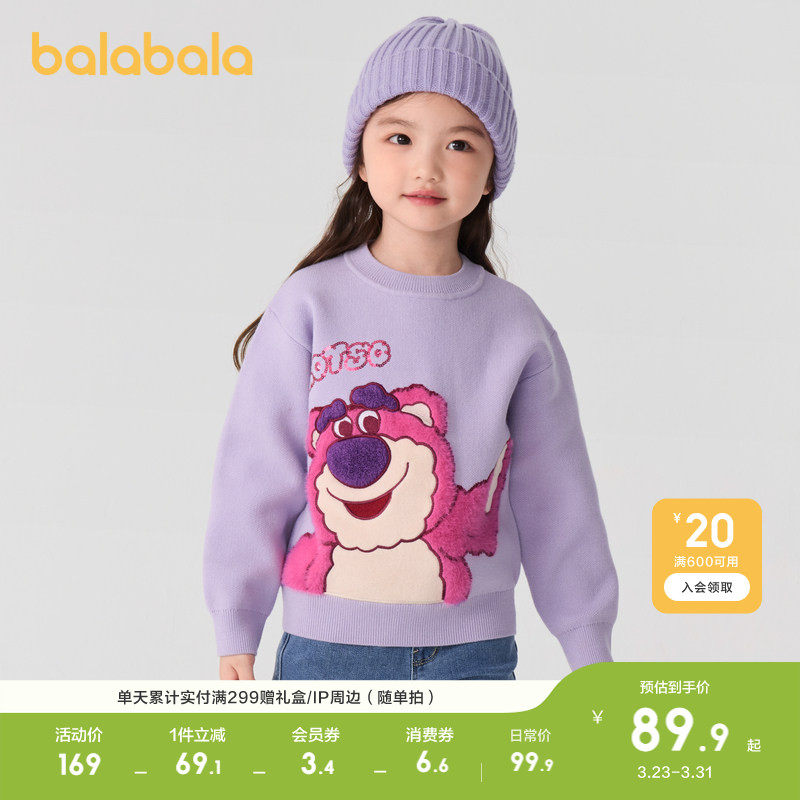 【草莓熊IP】巴拉巴拉童装儿童毛衣女童秋冬装甜美毛衫潮休闲上衣