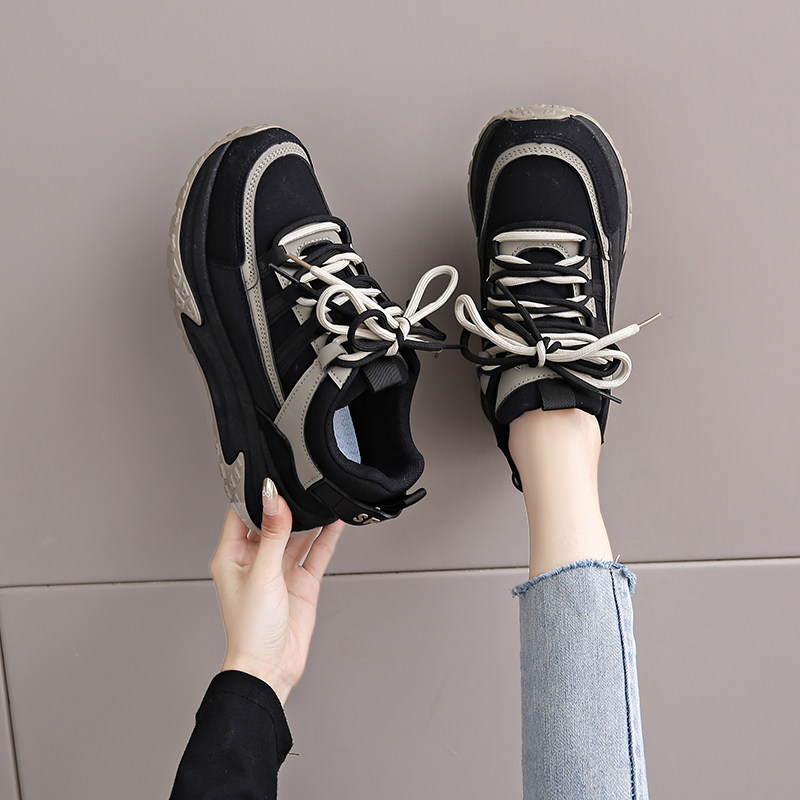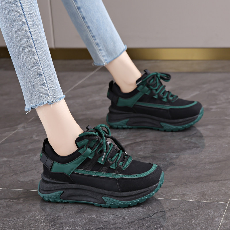 Chio2nd南风 4cm增高磨砂牛皮德训鞋子女款秋冬复古休闲鞋运动鞋