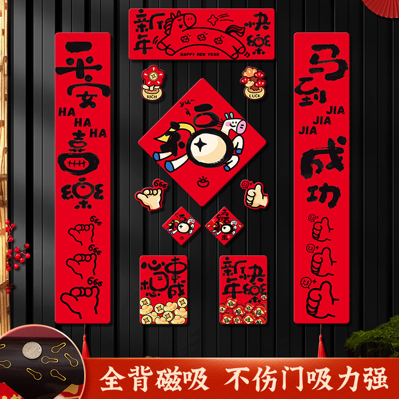 马年磁吸对联2026新款春联创意哈哈哈哈小门联春节入户门新年装饰