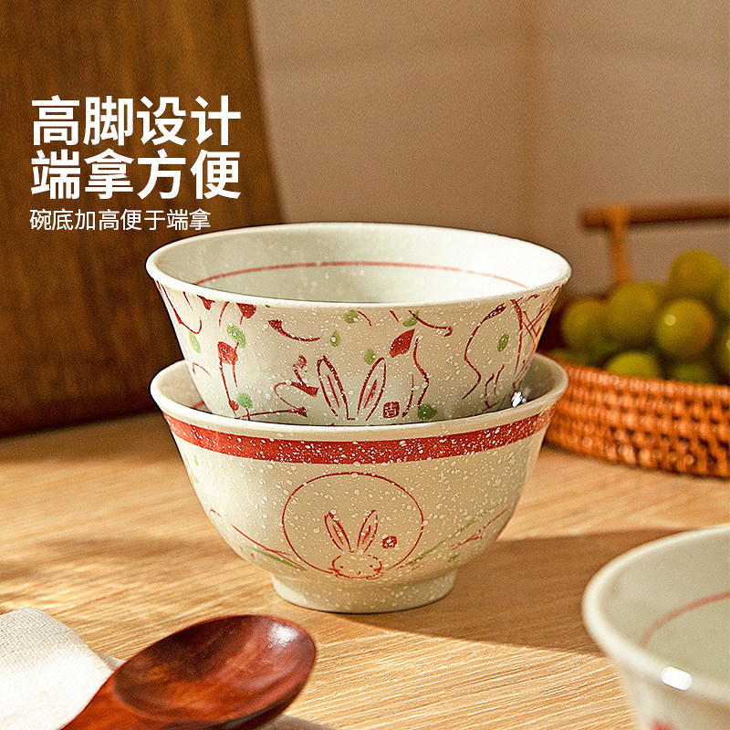 陶瓷餐具日式创意祝福水果碗碗家用吃饭专用小碗精致可爱饭碗