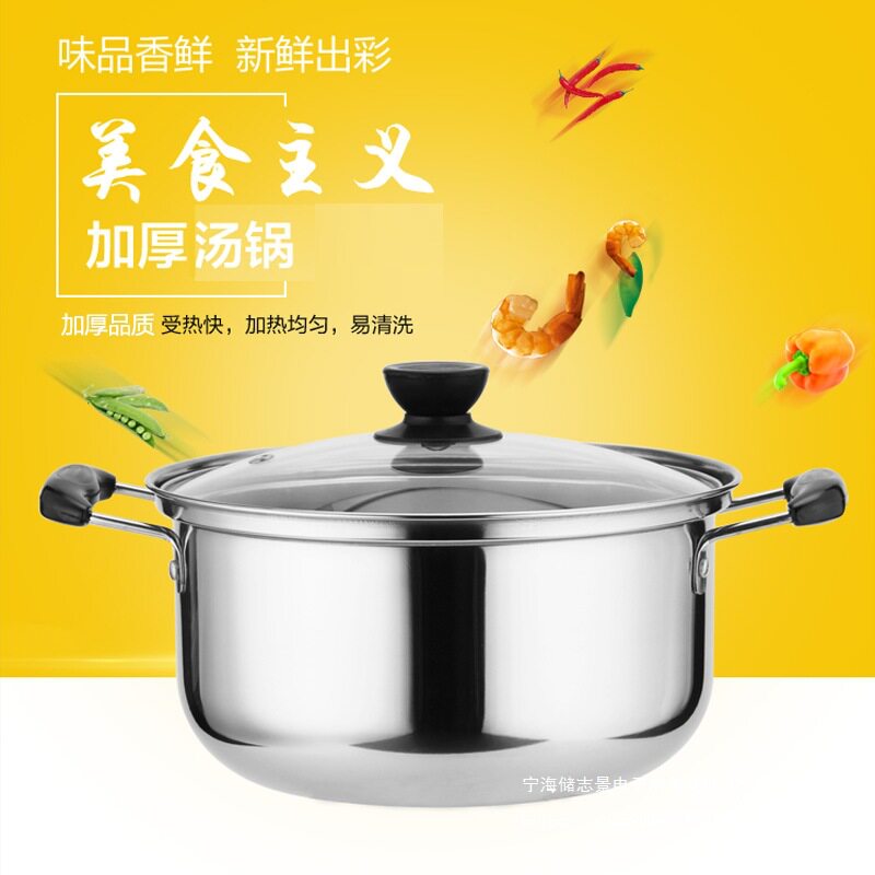 荣事达无涂层304不锈钢汤锅加厚家用燃气电磁炉蒸煮炖锅双耳煮锅