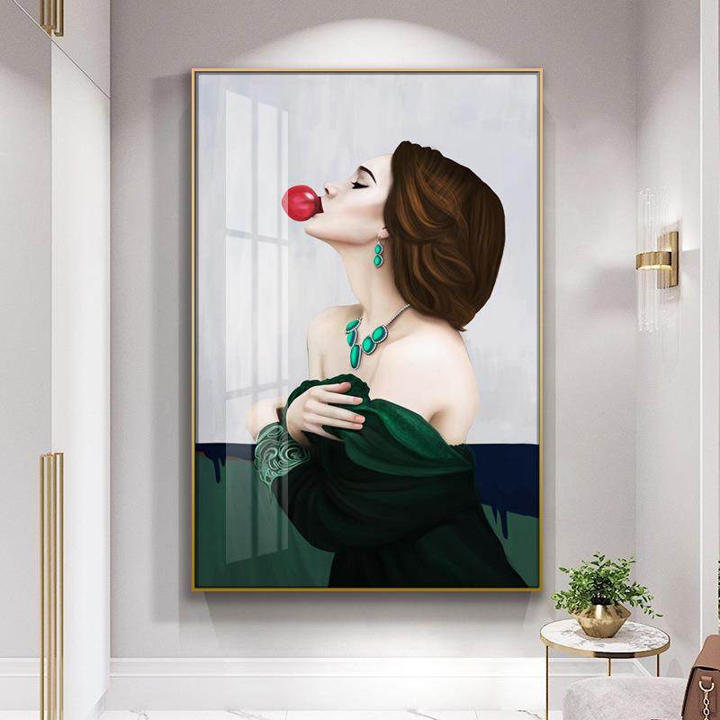 玄关装饰画现代简约竖版人物壁画高端入户墙轻奢过道油画走廊挂画
