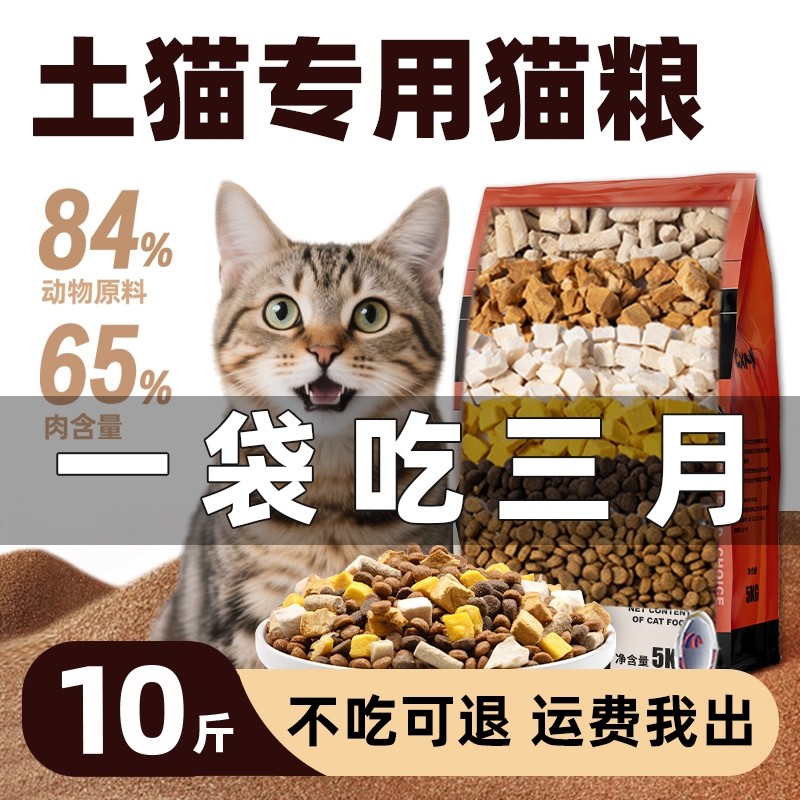 果喜蜜农村土猫专用猫粮10斤实惠装成猫幼猫增肥发腮营养流浪猫20