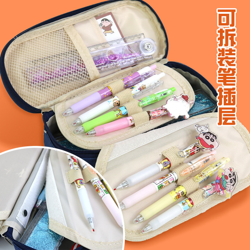 蜡笔小新笔袋大容量笔盒多功能密码锁文具盒中小学生收纳盒铅笔袋