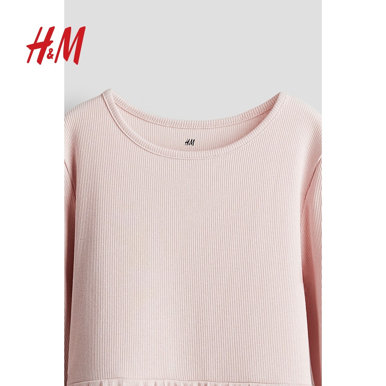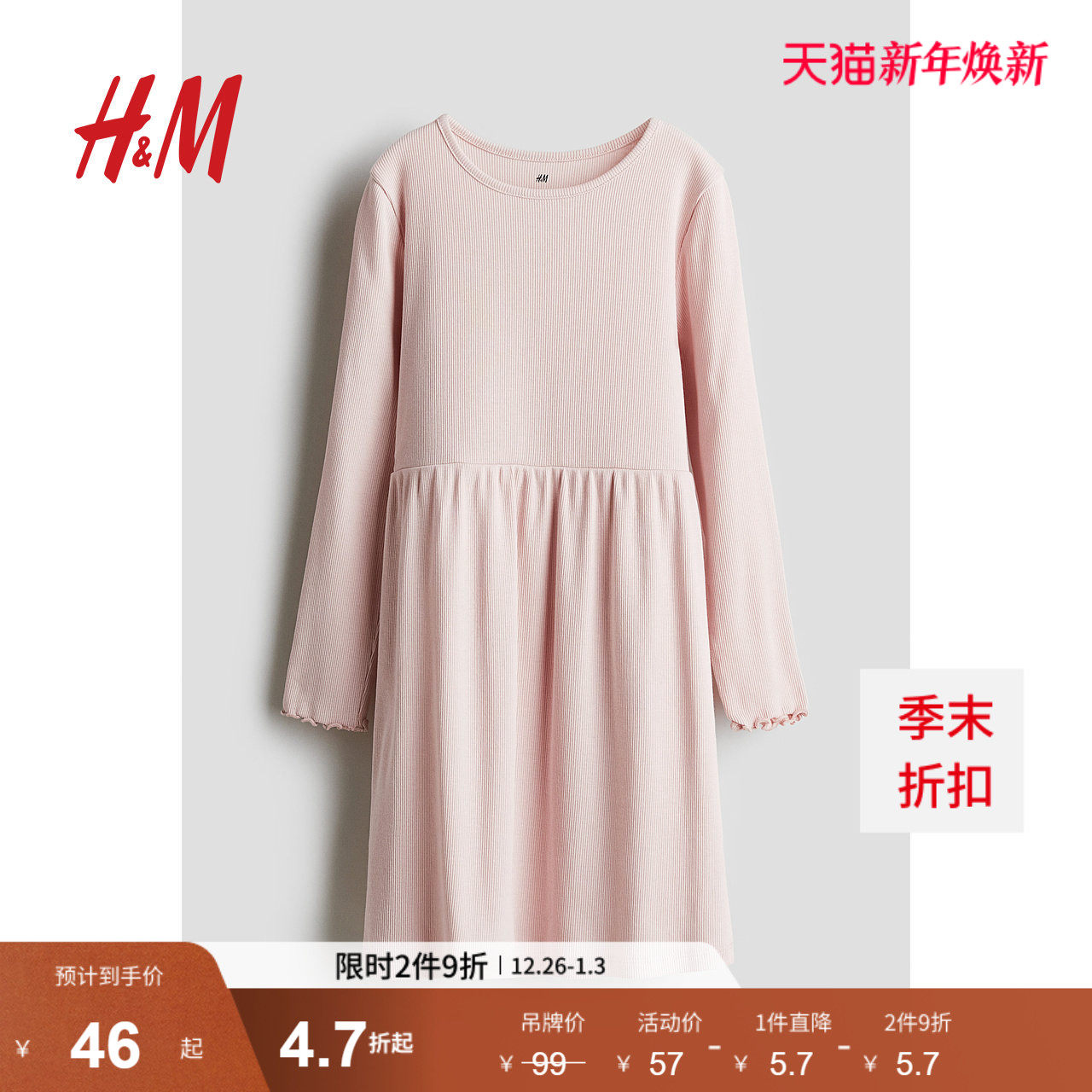 HM童装儿童女童裙子2025新款可爱棉质罗纹汗布连衣公主裙1248317