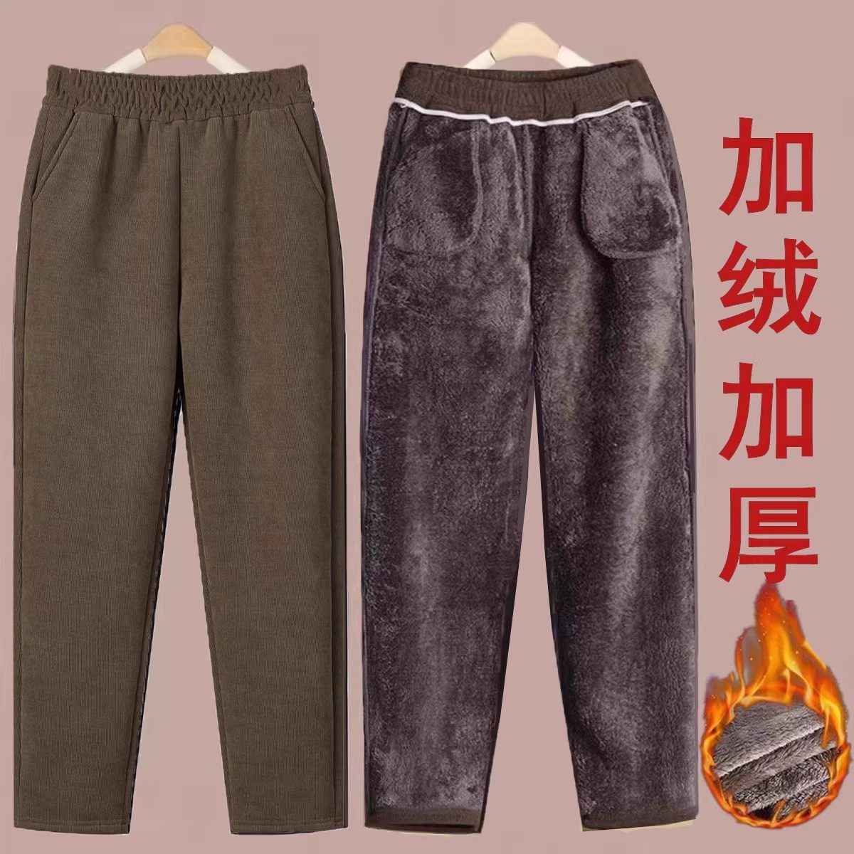 条绒休闲裤女裤子秋冬女装高腰加绒直筒裤小个子灯芯绒中年休闲裤