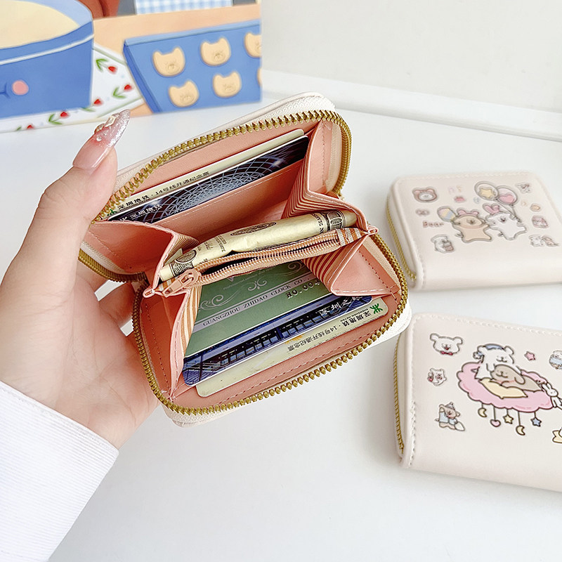日版线条小狗钱包可爱卡通2025新款卡包女小巧大容量多功能零钱包