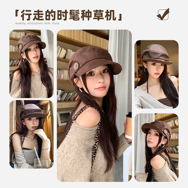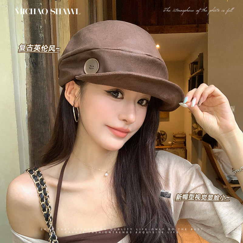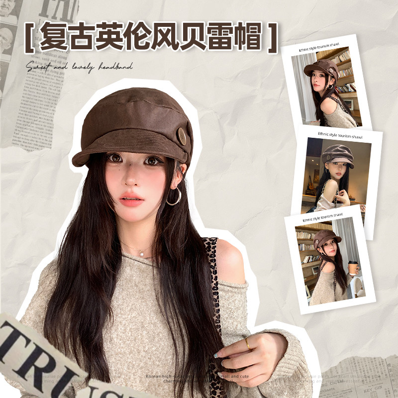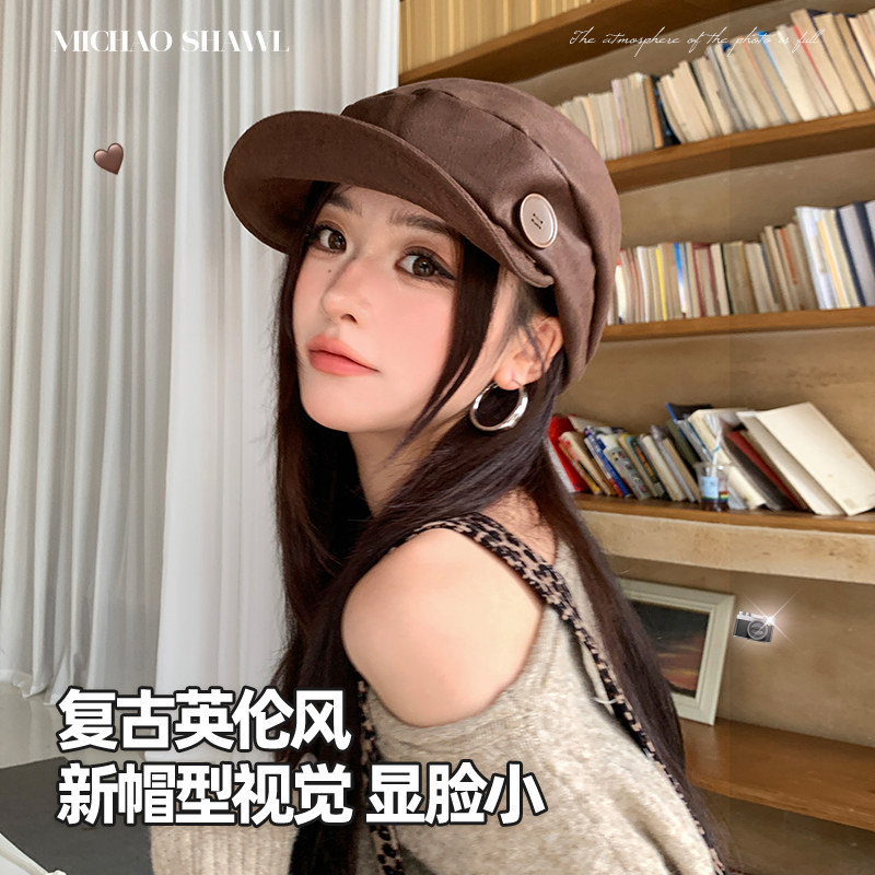 贝雷帽子女2025新款显脸小画家帽复古百搭八角报童帽大头围鸭舌帽