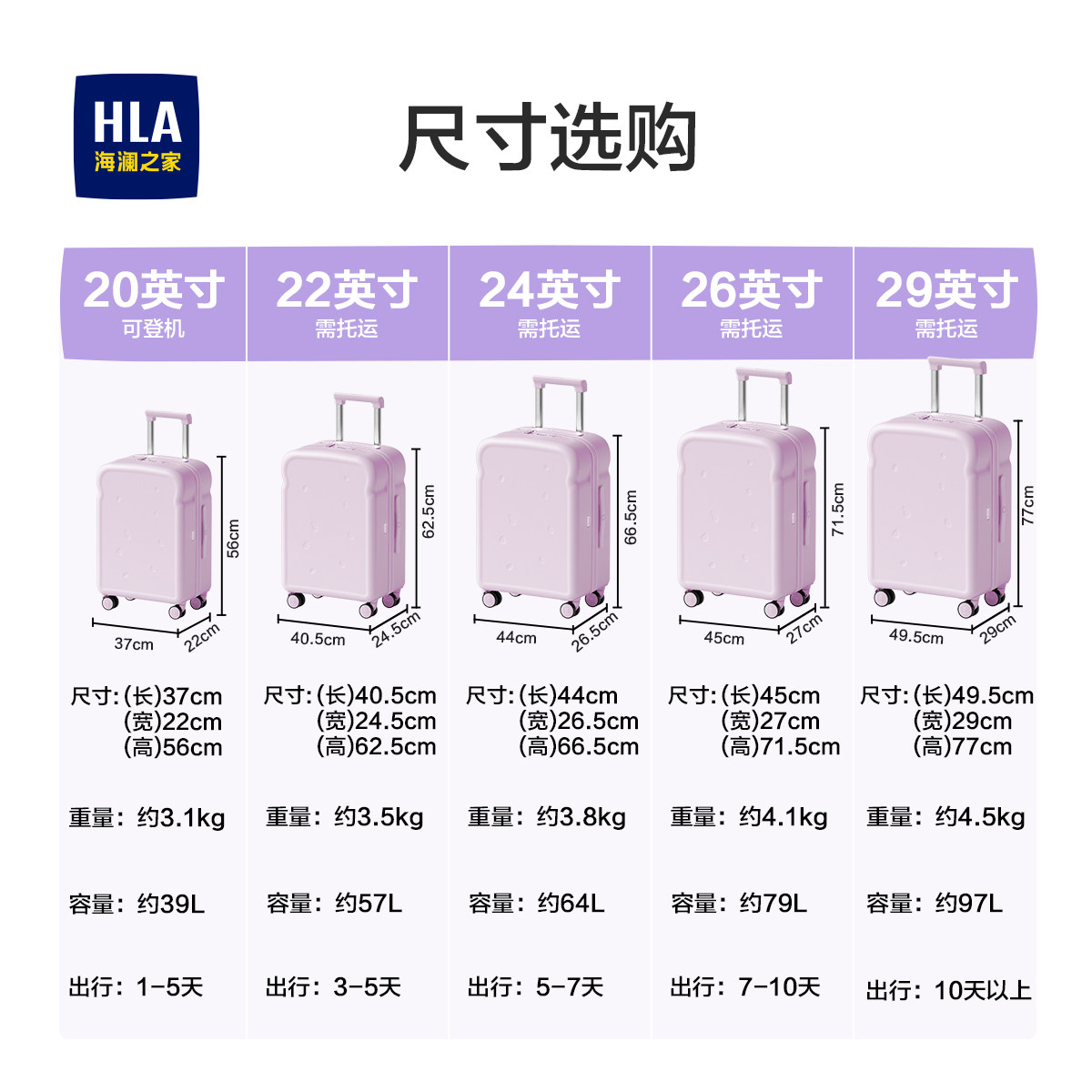 HLA/海澜之家大容量行李箱女学生20寸登机旅行拉杆箱24寸男26拉链