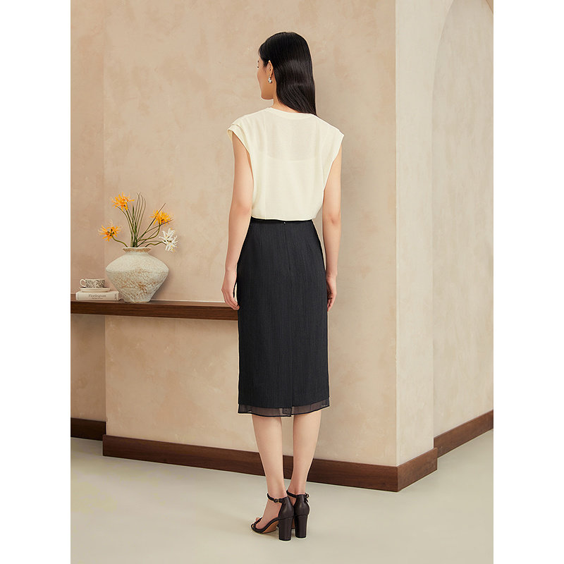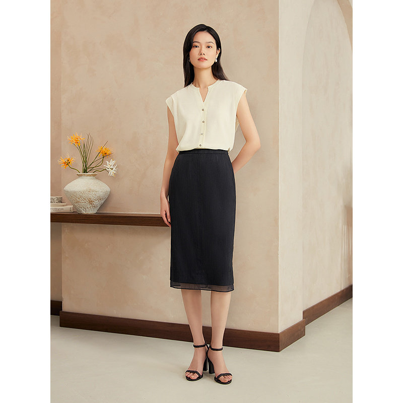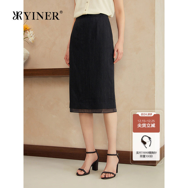 YINER音儿2025夏季新款法式微弹力羊毛直筒裙子气质通勤半身裙