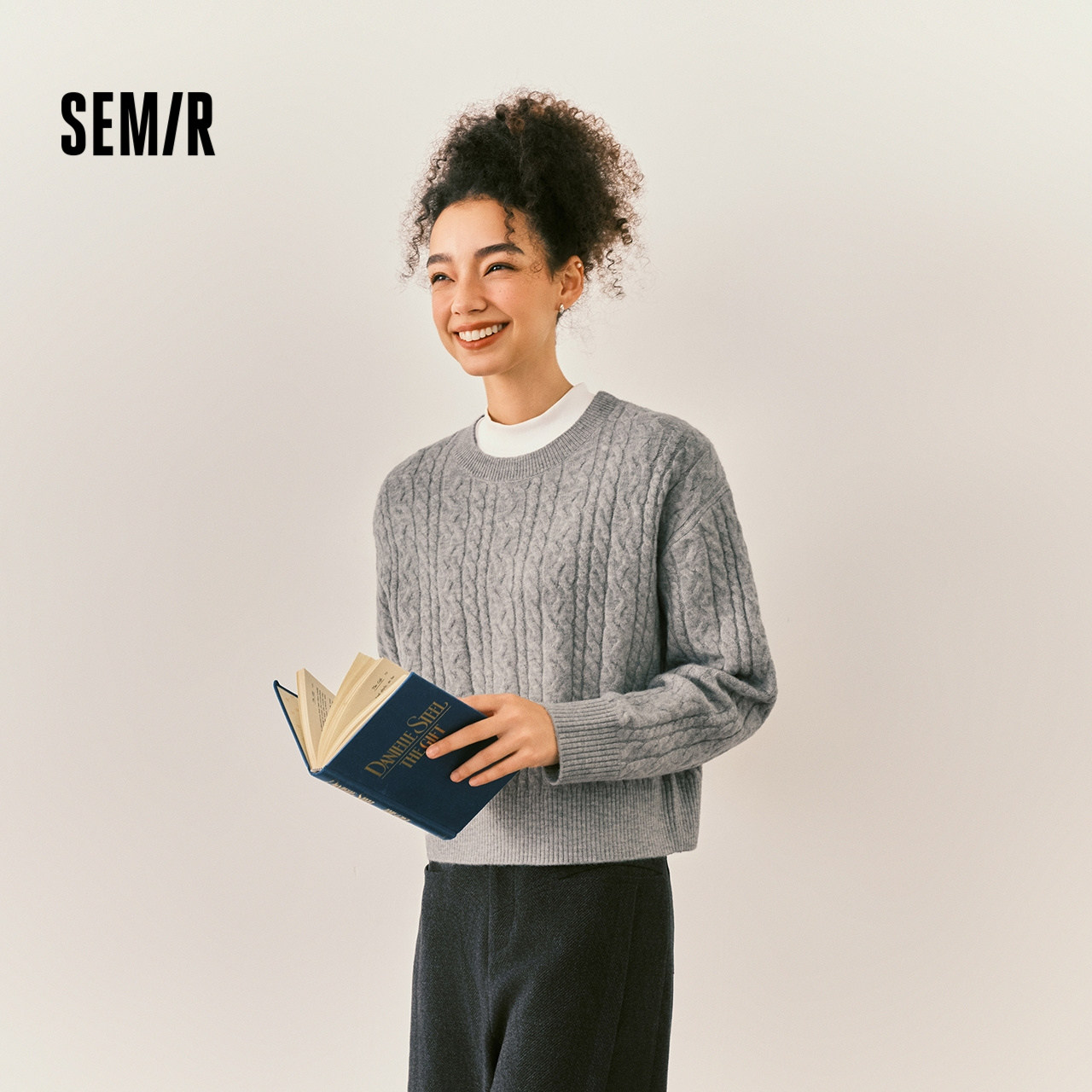 陈都灵同款|商场同款森柔森马毛衣女冬季短款圆领2025新款毛衫