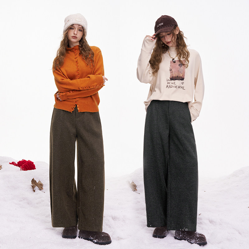 唐狮DESSO秋冬新款糯米裤高腰垂感宽松加绒直筒阔腿裤5
