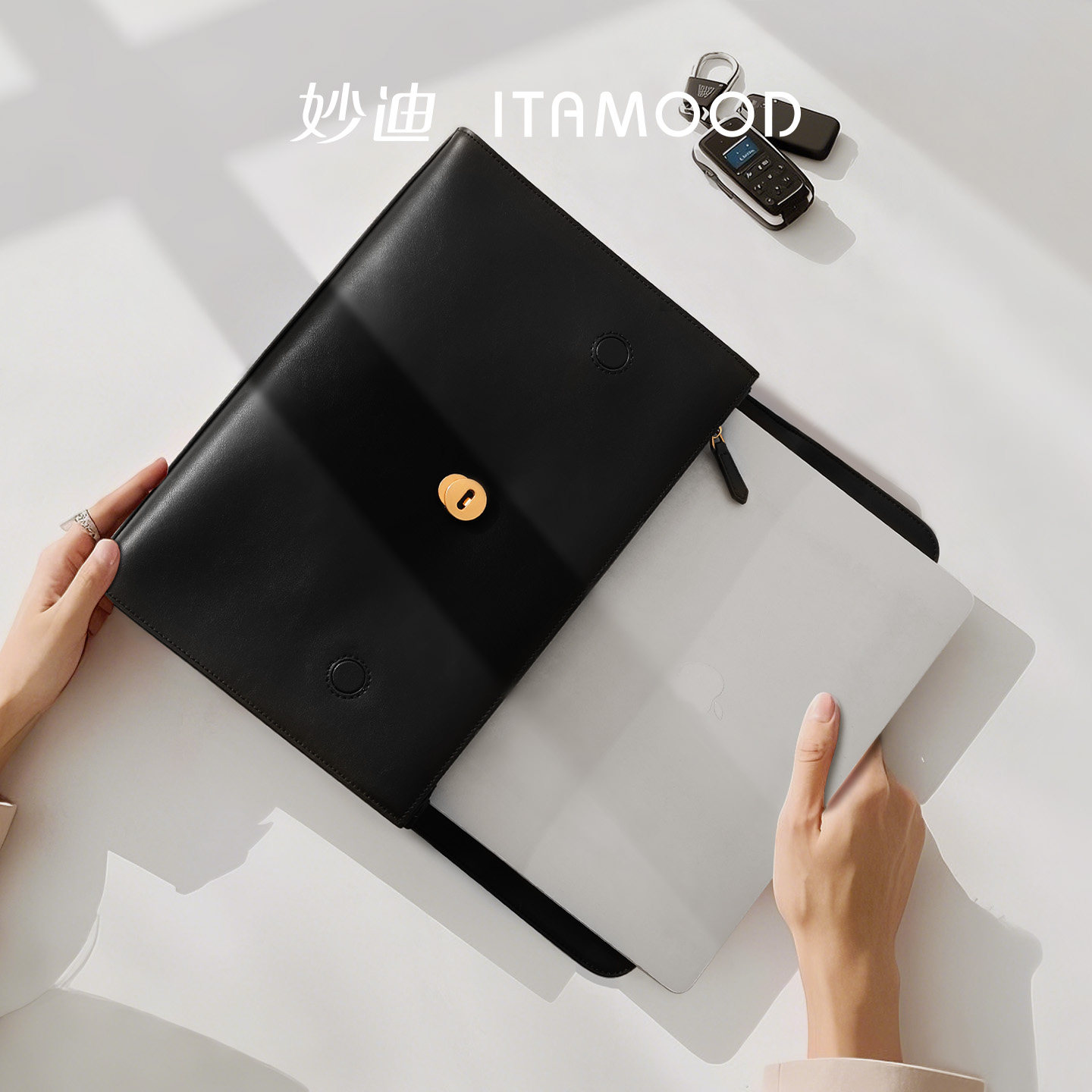 妙迪大容量真皮电脑包托特包知识分子公文包职场女性通勤单肩包包