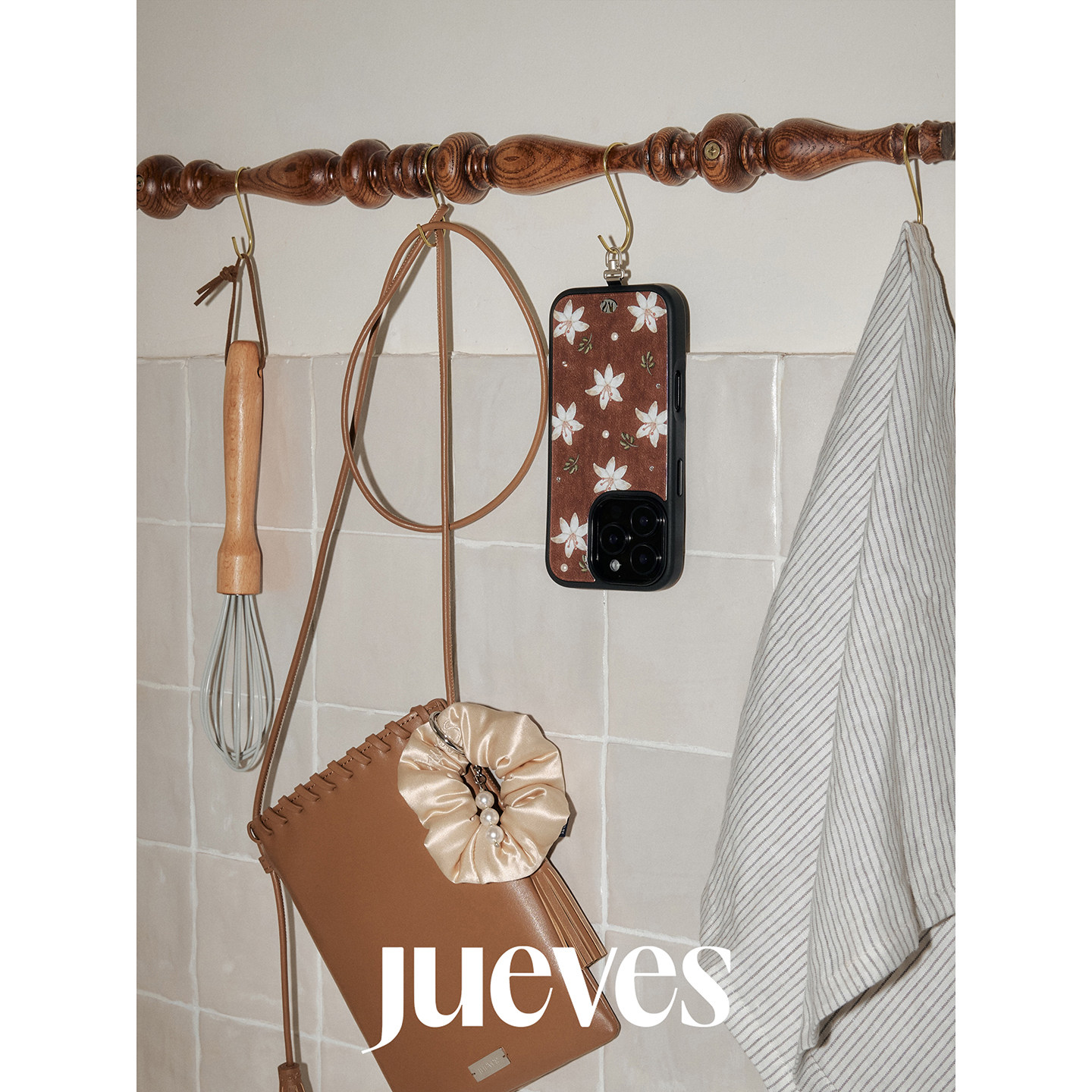 JUEVES星期四“古董市集”木调百合珍珠钻石壳iphone17promax手机壳苹果16pro适用华为mate70pro硅胶全包
