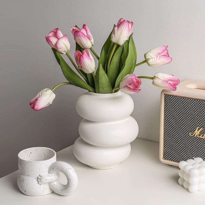 贝汉美陶瓷花瓶白色客厅样板间家居软装饰品创意甜甜圈花器