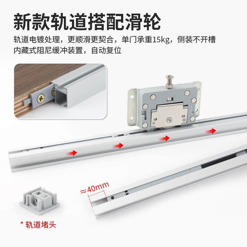 免开槽整体橱柜外挂侧装移门滑轨电视书柜双缓冲阻尼推拉轨道五金
