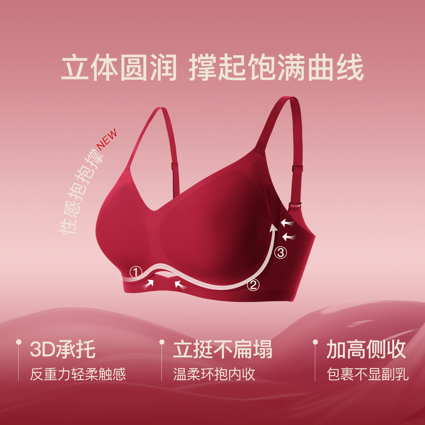 润微提拉内衣女大胸显小无痕防下垂收副乳胸罩爆款隐形粉底液文胸